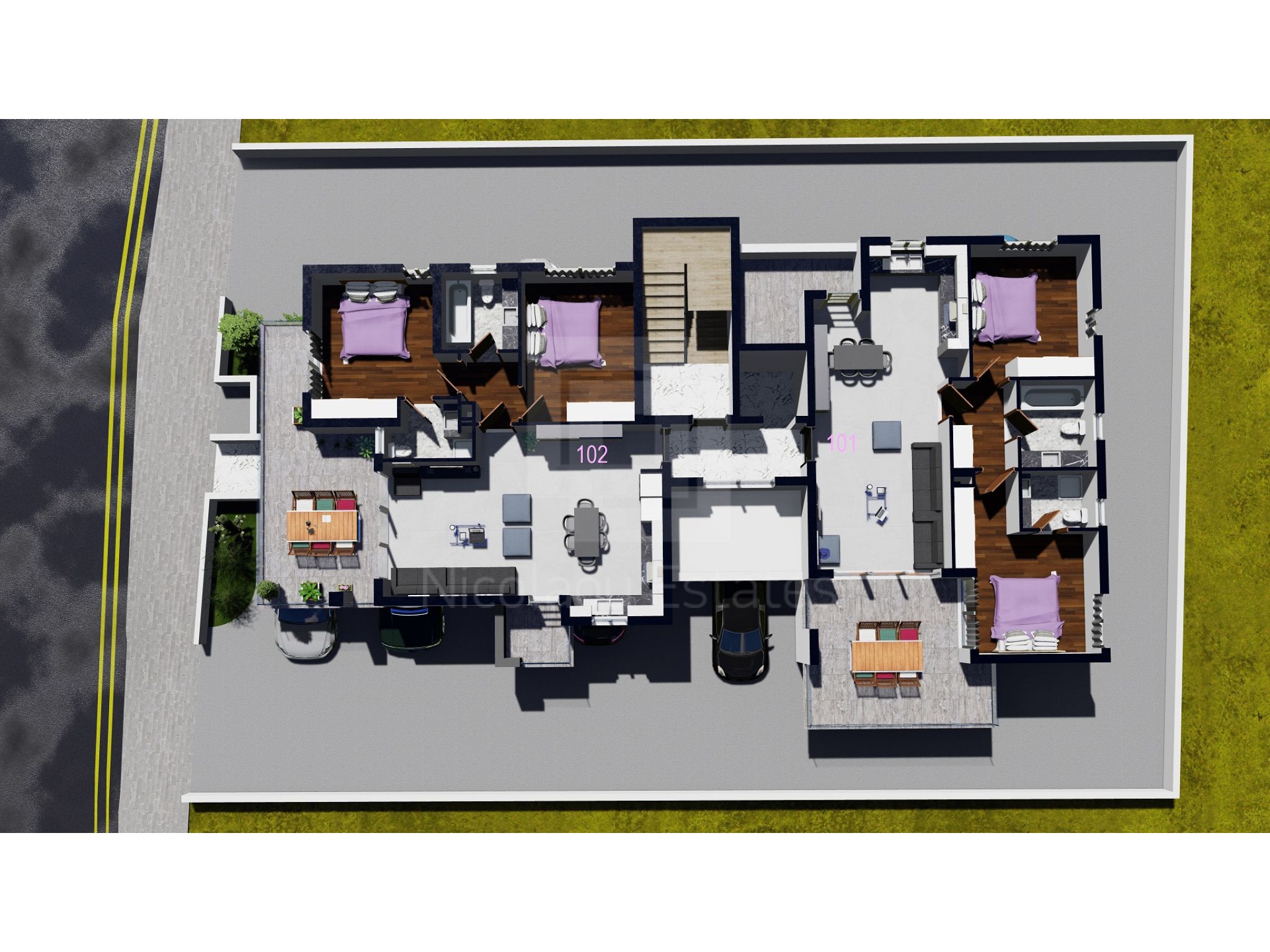 The project has six (6) independent luxury energy efficiency A apartments of 1, 2 & 3 bedrooms in a three-storey apartment building in a quiet location next to a green area in Lakatamia.