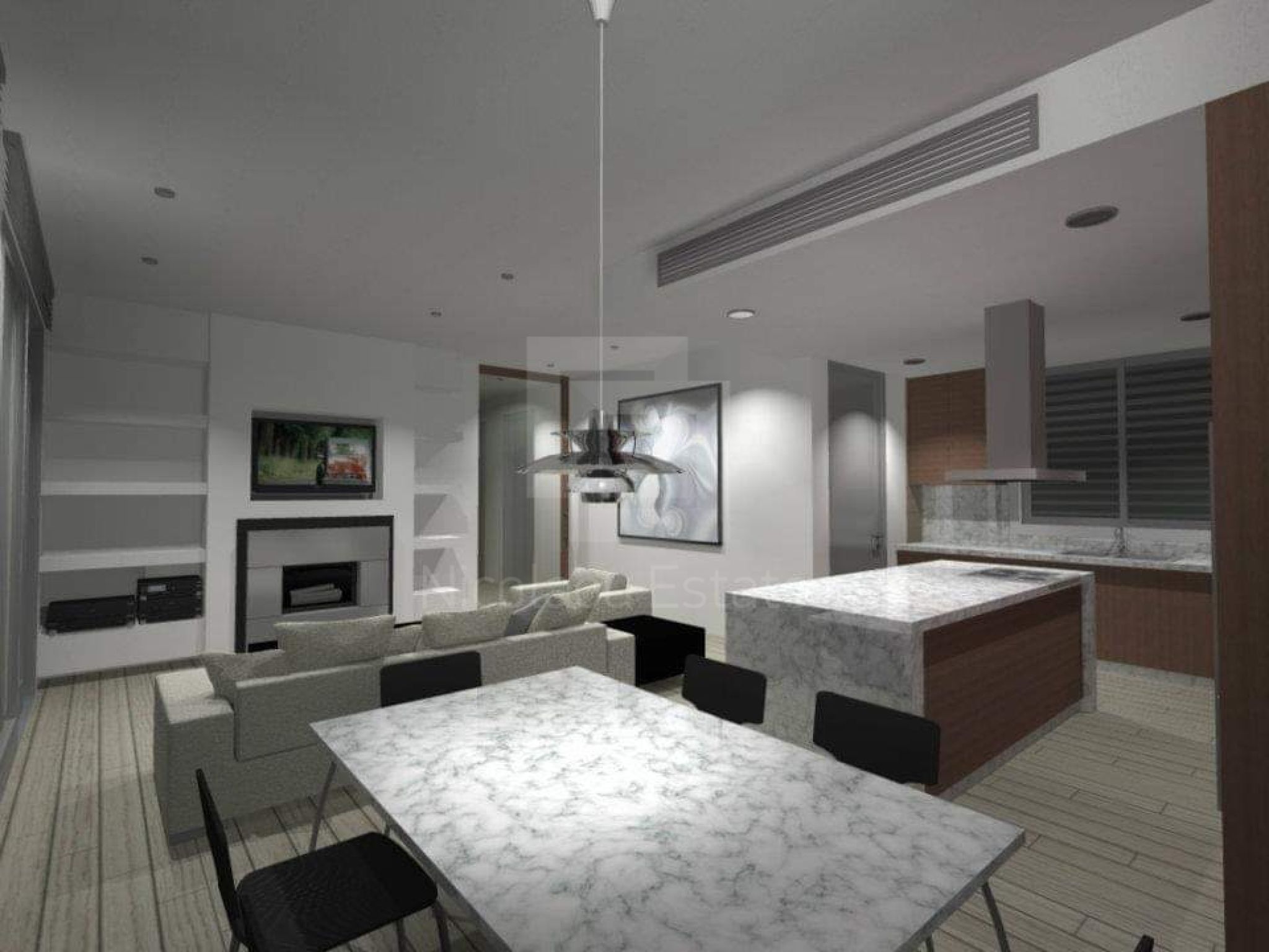 The Ground Floor of 123 sq.m. consist of a large kitchen of 71 sq.m with living, dining area., with α fire place, a small laundry/ kitchen room and α quests toilet. Additionally, there is a large entrance living and dining room of 51 sq. m. There is also a car parking place of 2 cars, a large covered veranda and a garden area.