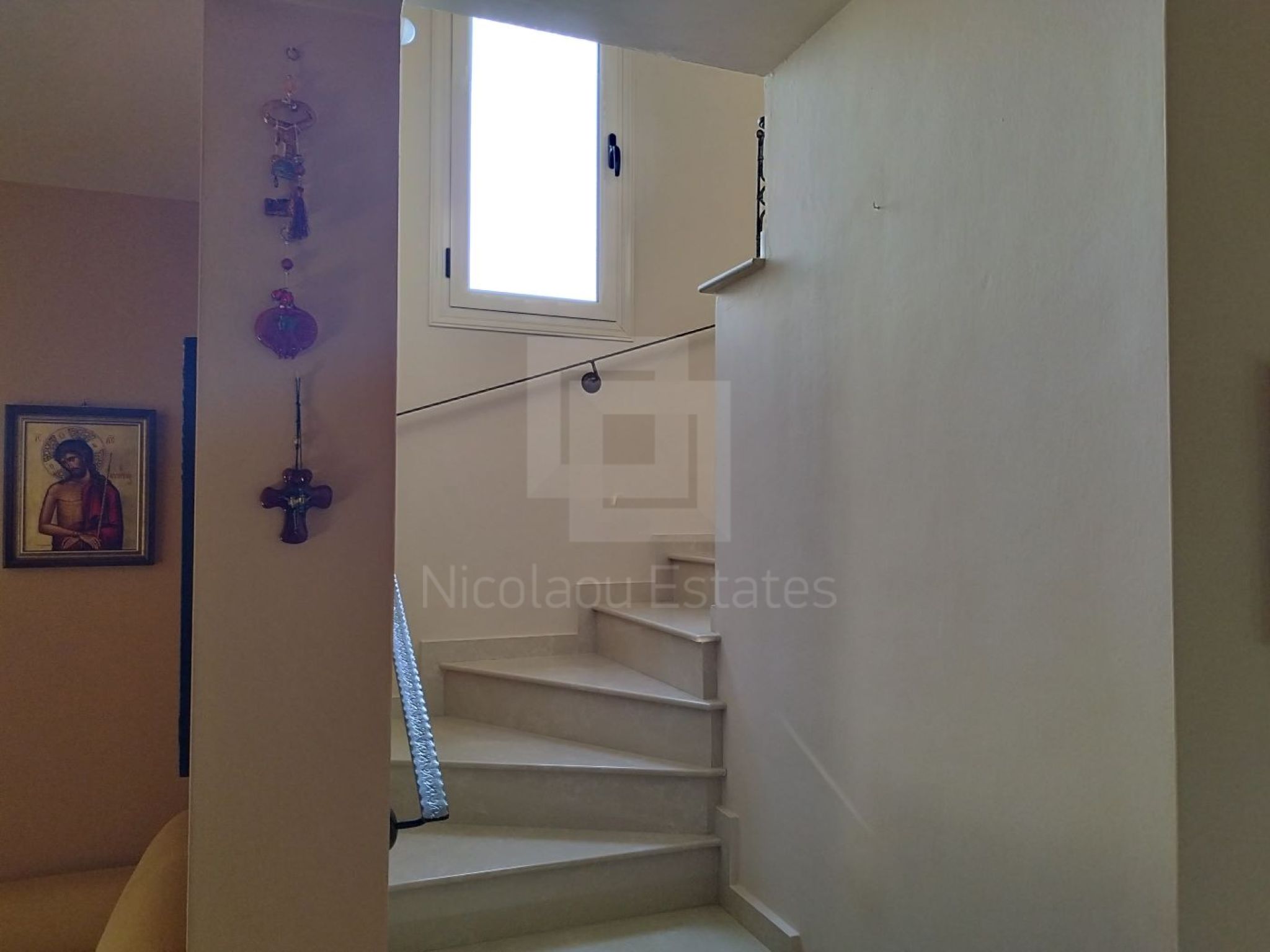 Everything in the house is like brand new and the house itself is in excellent condition. On ground level there is the living/dining room, the guest toilet and the fully equipped kitchen. On the 1st level there are 2 very spacious bedrooms and the main bathroom with a full bathtub. Further up on the 2nd level there is the master bedroom with it’s en-suite bathroom with a shower cubicle and excellent panoramic views. All the bedrooms have their own small veranda.