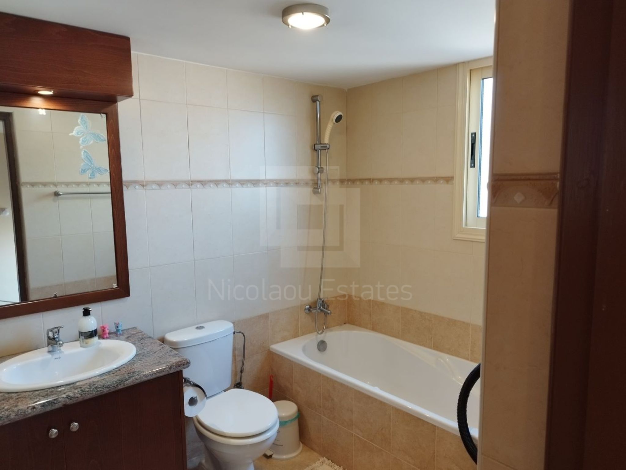 This beautiful house was built in 2005 in a half plot but it’s completely detached. It comes with about 165 sq.m of inside covered areas. There is also a covered/enclosed area at the back of the house as well a small storage room and a covered parking area. The house is surrounded by a small garden.