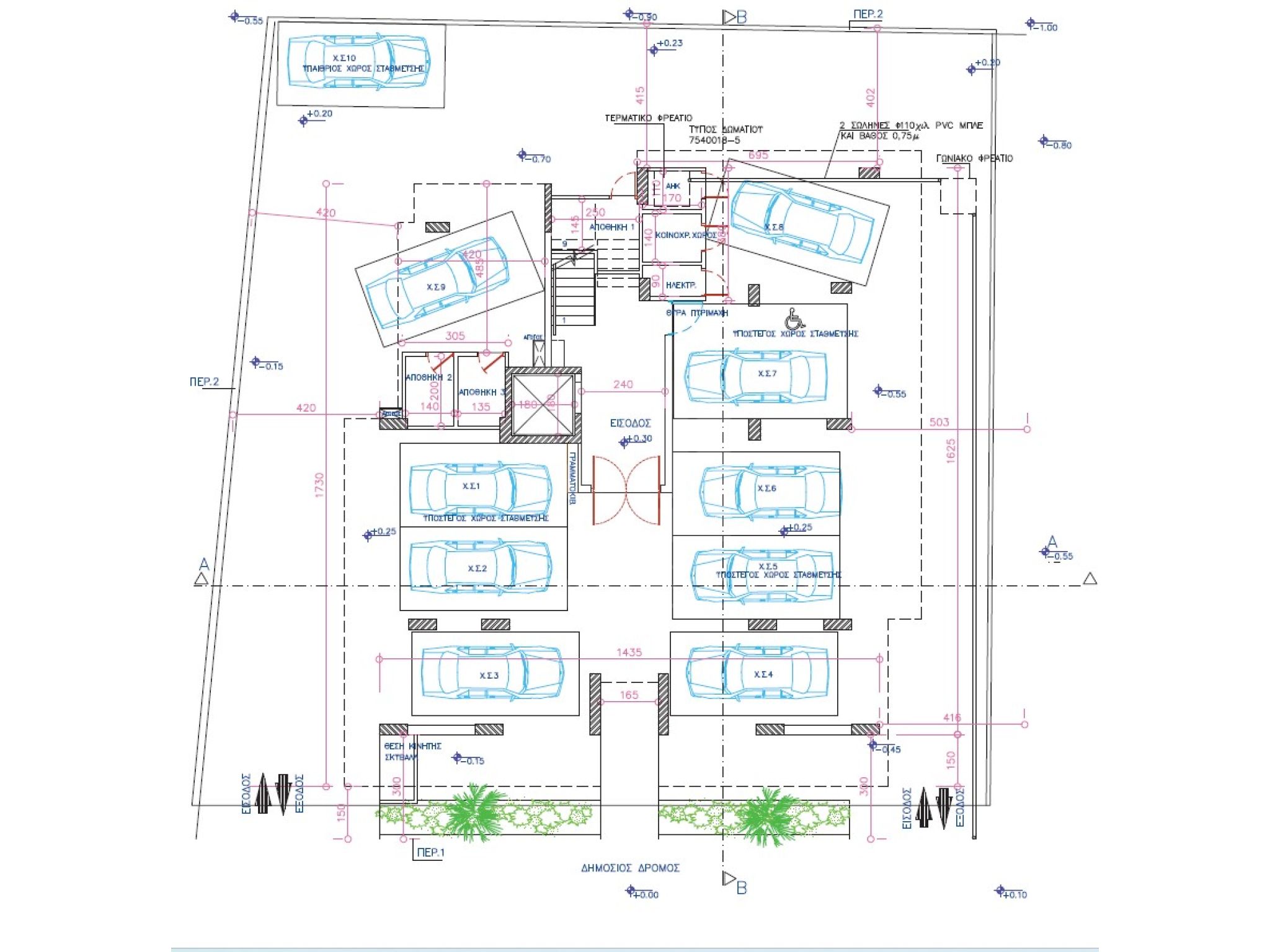 Στεγασμένος χώρος στάθμευσης και αποθήκη για κάθε διαμέρισμα