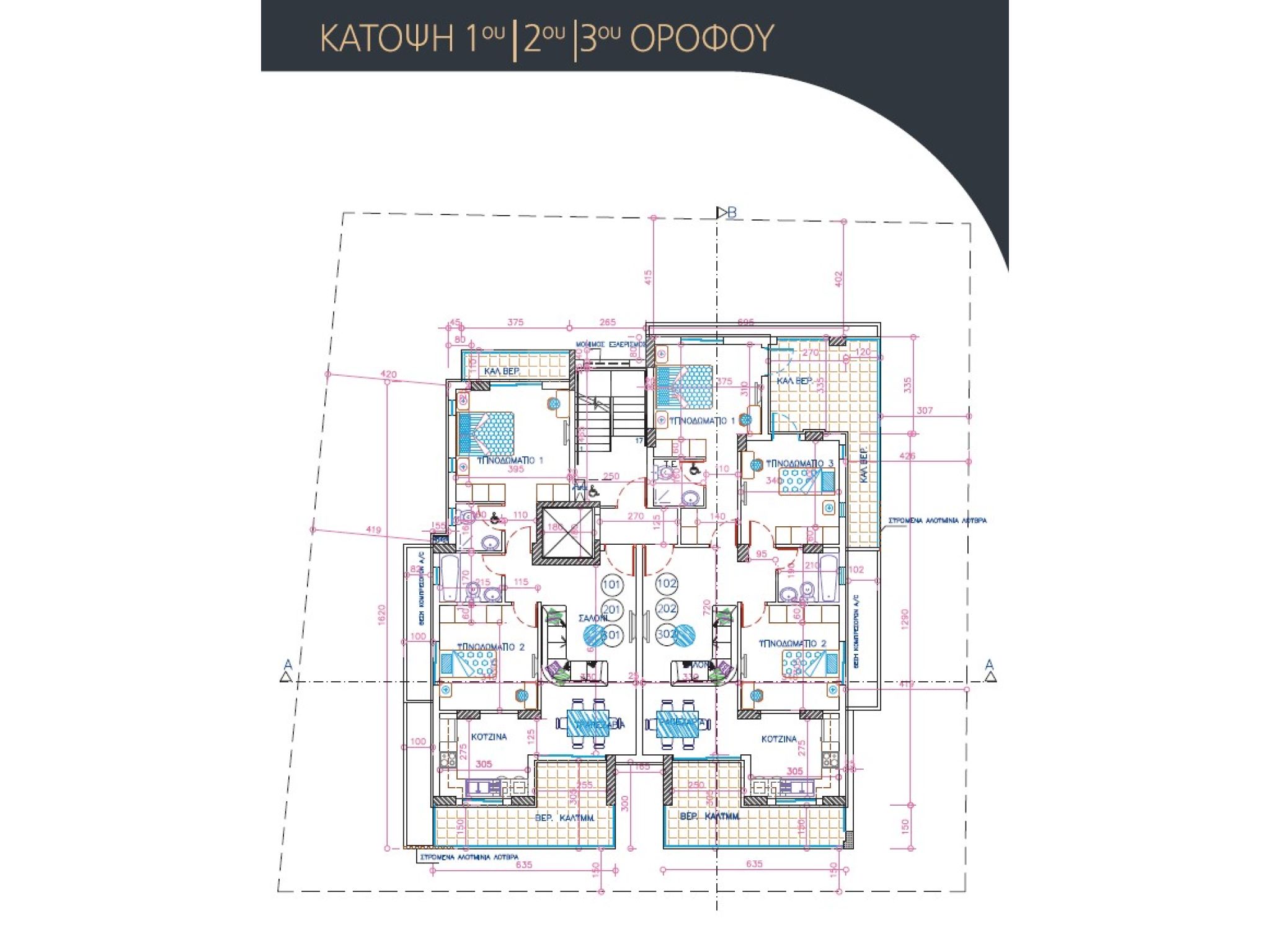 Τα διαμερίσματα διαθέτουν άνετους εσωτερικούς χώρους με πρακτική και έξυπνη διαρρύθμιση, ευρύχωρα υπνοδωμάτια, μεγάλες βεράντες με ανεμπόδιστη θέα και βοηθητικές βεράντες για μέγιστη λειτουργικότητα.