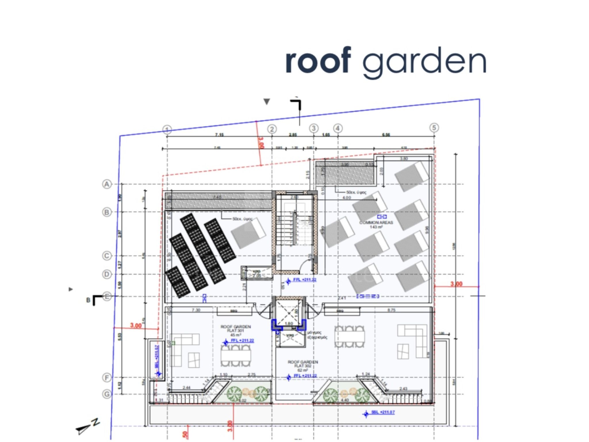 - Ισόγειοι στεγασμένοι χώροι στάθμευσης και αποθήκες.