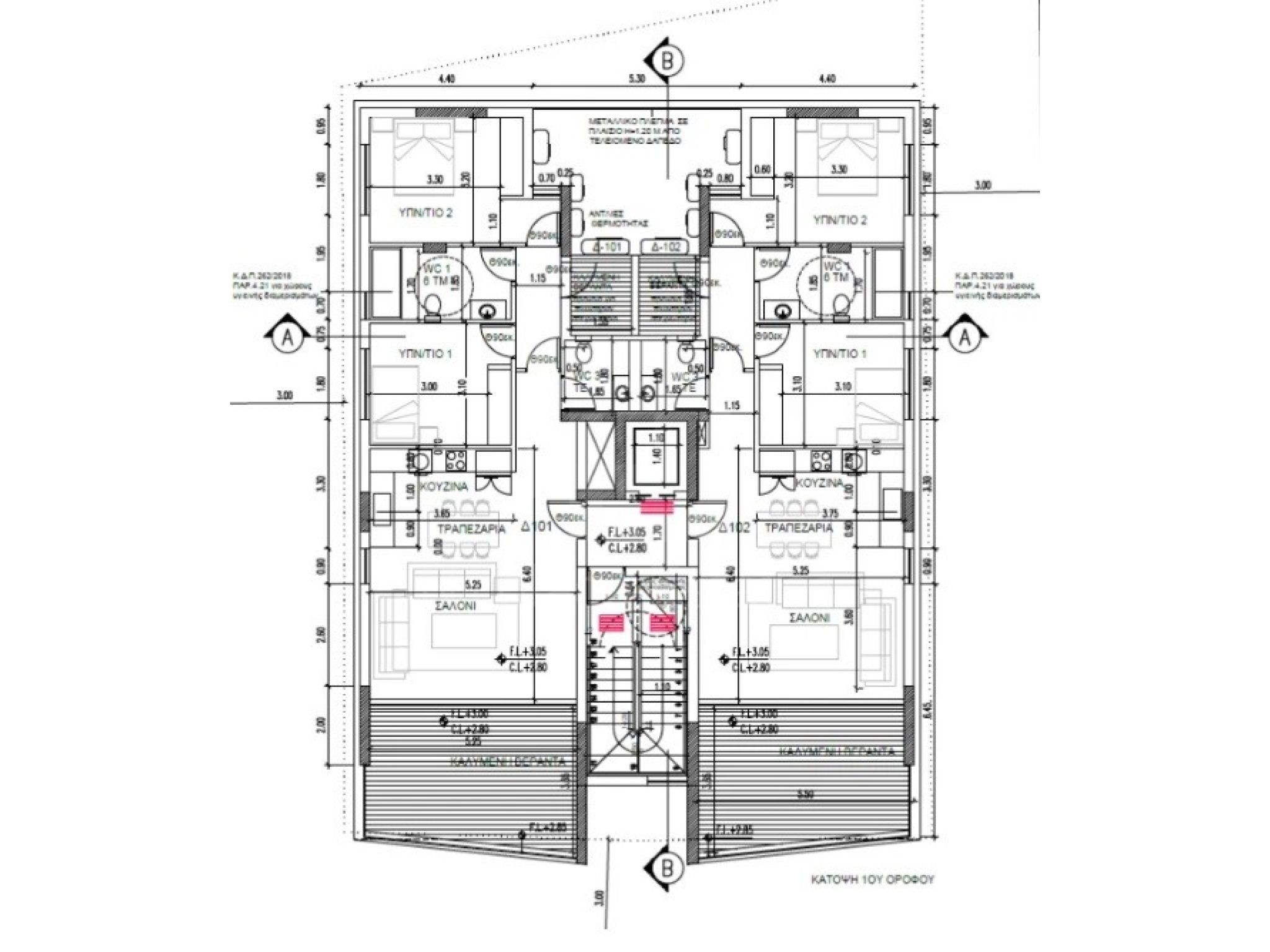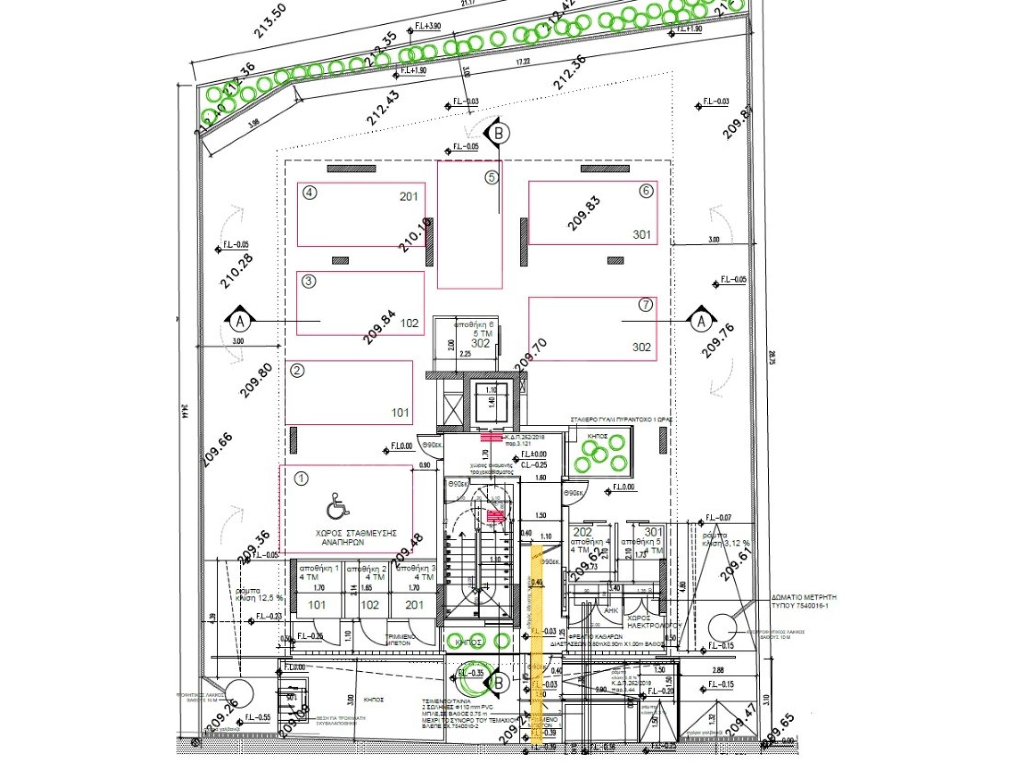 Κάθε διαμέρισμα θα έχει μία θέση στάθμευσης και αποθήκη.