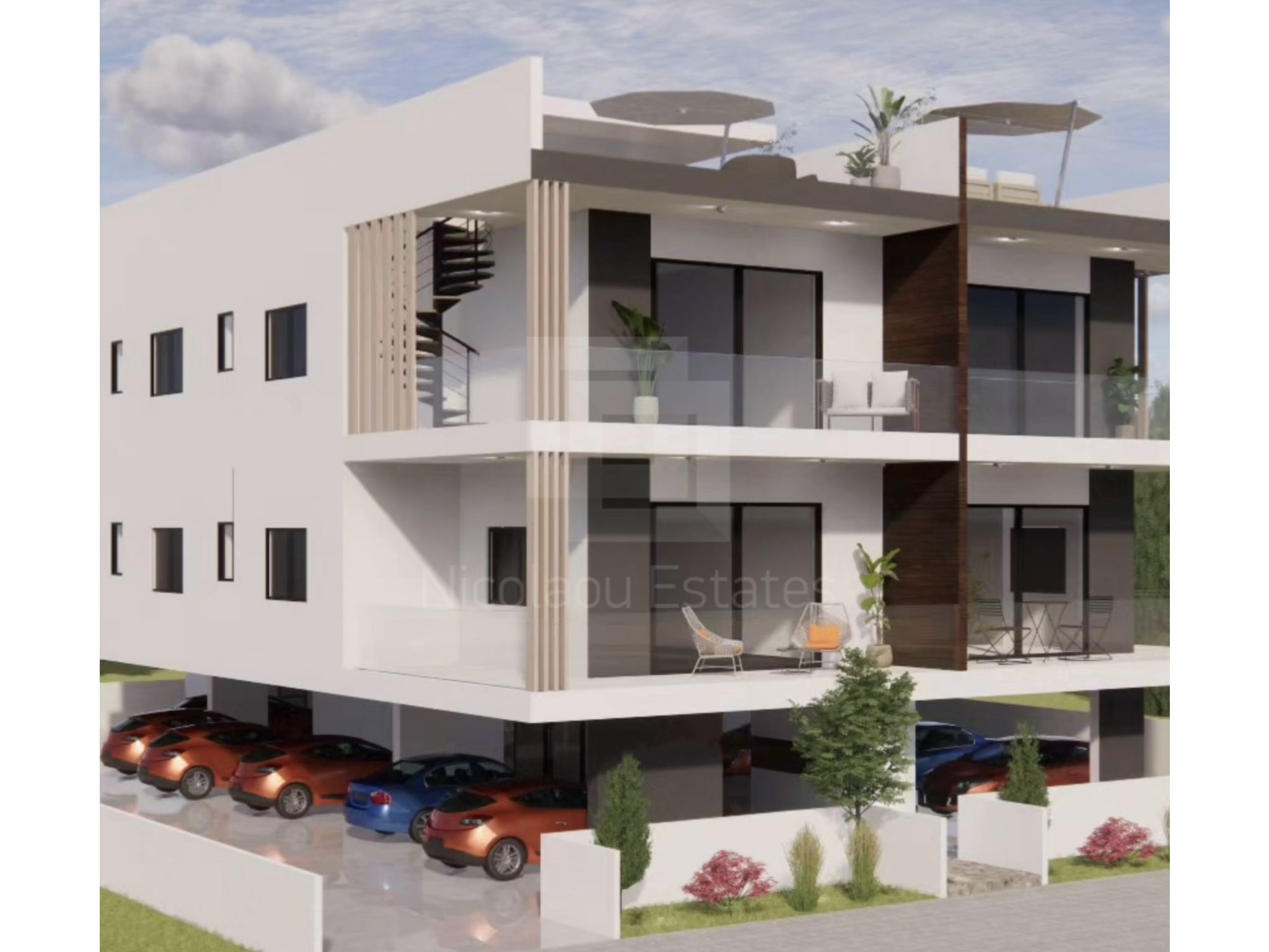 Η πολυκατοικία διαθέτει δύο ορόφους με συνολικά 6 διαμερίσματα. Τα δύο διαμερίσματα ενός υπνοδωματίου βρίσκονται στον 1ο και 2ο όροφο και αποτελούνται από ενιαίο χώρο σαλόνι-τραπεζαρία και κουζίνα, ένα ευρύχωρο υπνοδωμάτιο, μπάνιο και καλυμμένη βεράντα. Διαθέτουν καλυμμένο χώρο στάθμευσης και αποθήκη στο ισόγειο.