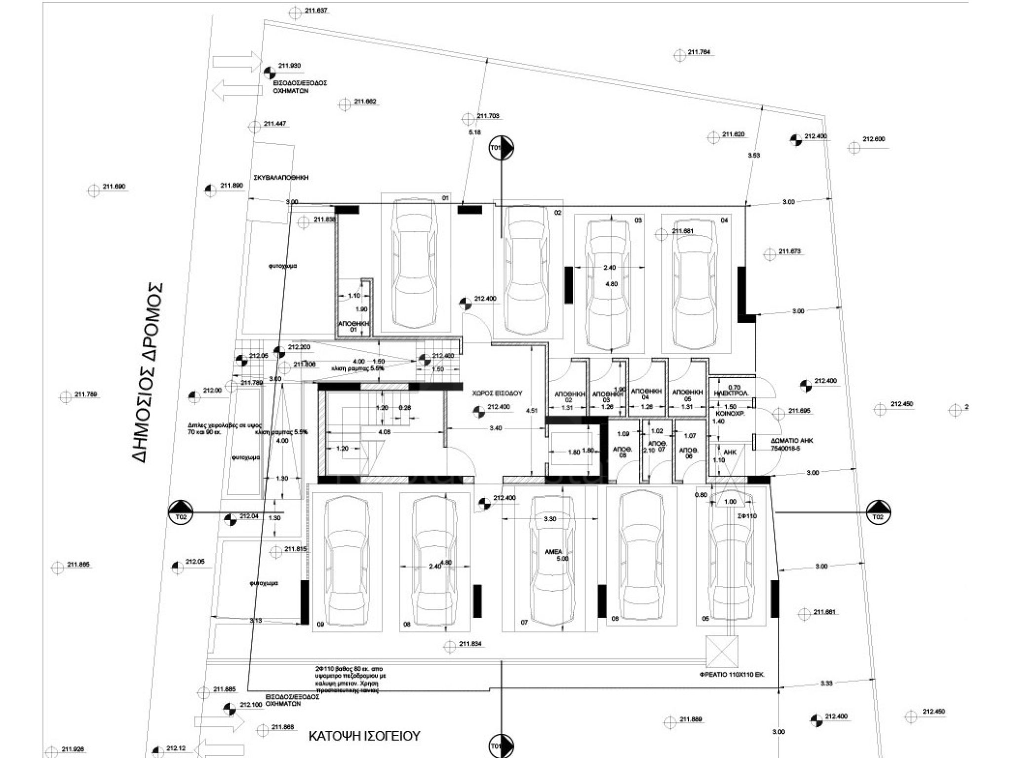 Στο υπόστεγο υπάρχουν λειτουργικά διαμορφωμένες θέσεις στάθμευσης, μία για κάθε διαμέρισμα με δύο σημεία εισόδου/εξόδου για αυτοκίνητα στους χώρους στάθμευσης της πολυκατοικίας.