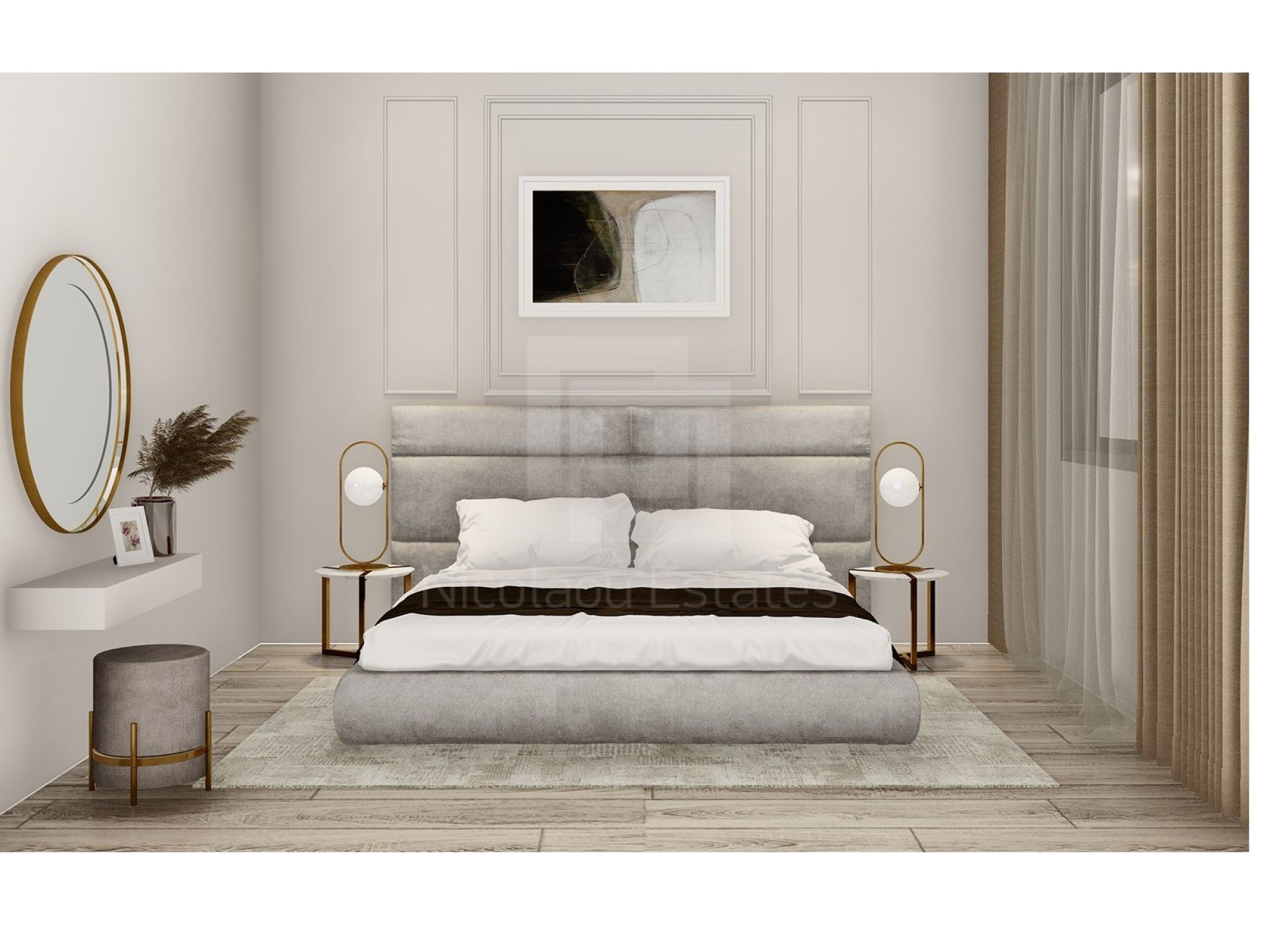 Full height windows guarantee maximum brightness; shading and sun protection will be provided by nicely designed blinds and curtains.