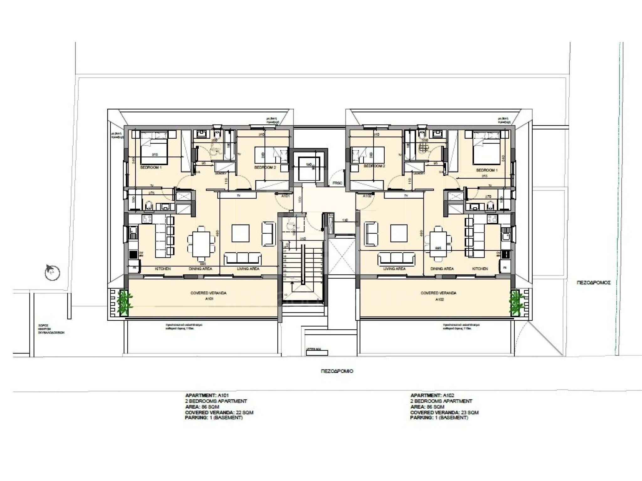 Όλα τα διαμερίσματα έχουν δικό τους χώρο στάθμευσης και αποθήκη.