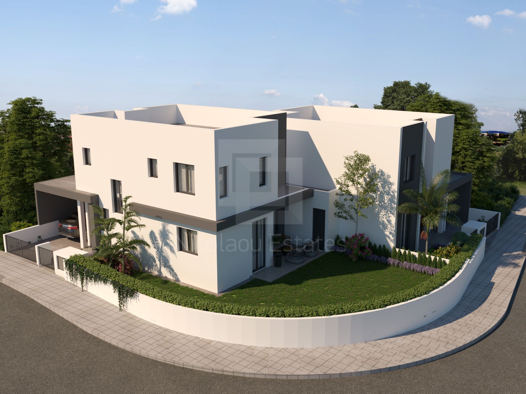 Each house comprises of a modern open ground floor plan, guest toilet, one bedroom / office room on the ground floor, three bedrooms on the first floor, and covered side-to-side private parking, whereas both houses are certified with Energy Class “A ”.