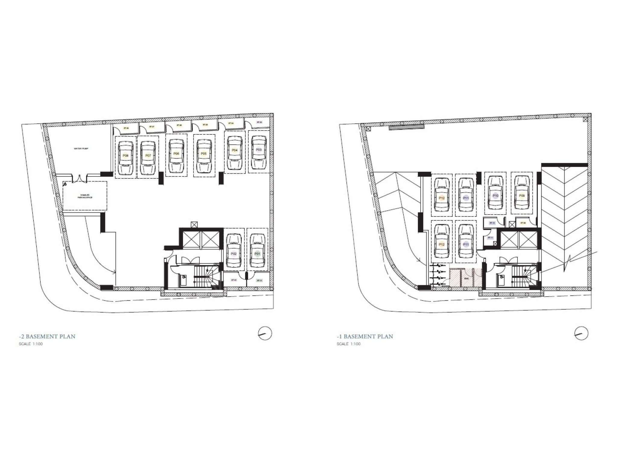 Το κτίριο διαθέτει δύο υπόγεια επίπεδα στάθμευσης, εξασφαλίζοντας άφθονο χώρο και ασφάλεια για τους κατοίκους του.