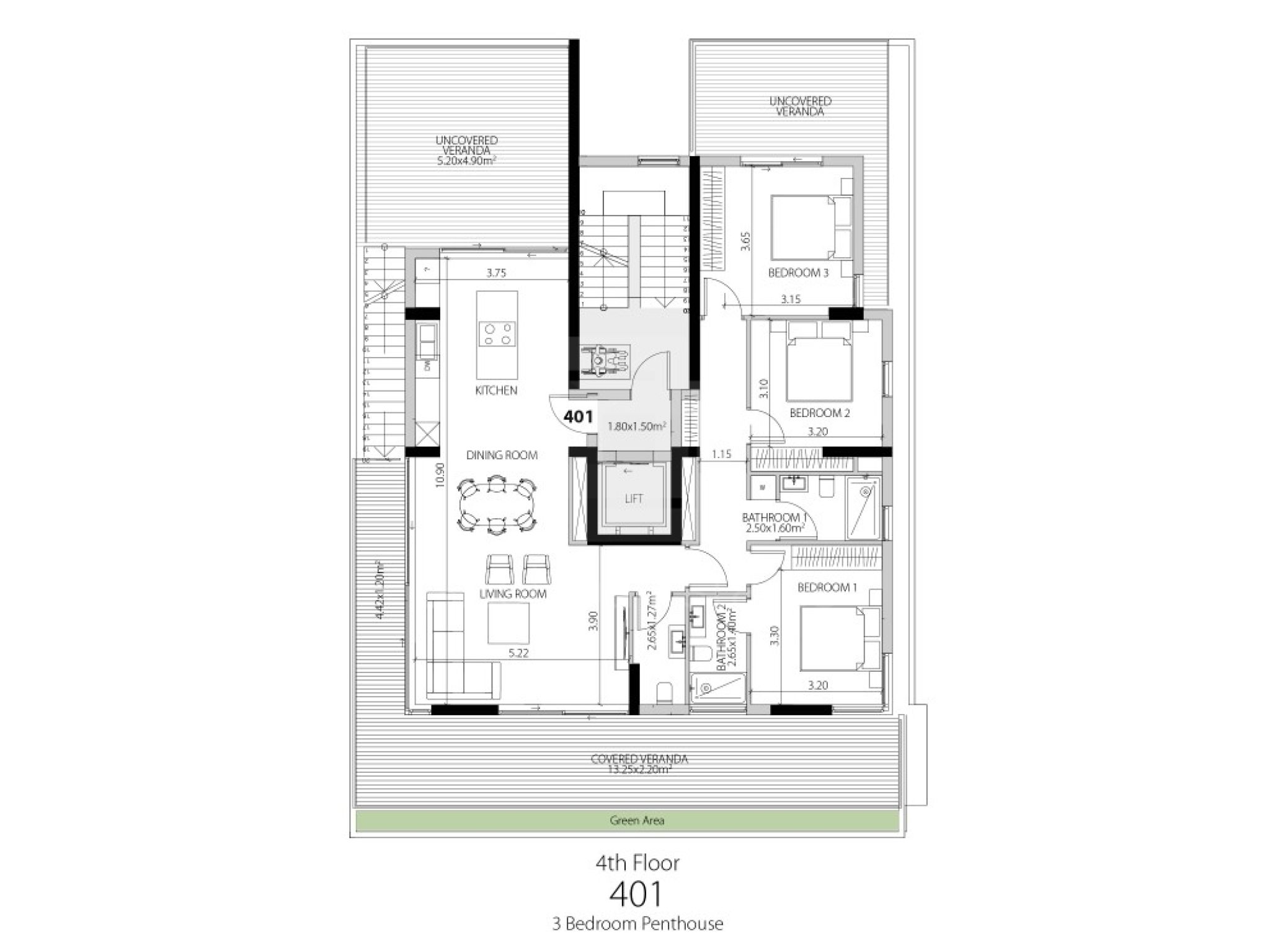 1 x Three-Bedroom Penthouse (with private roof garden and swimming pool)
