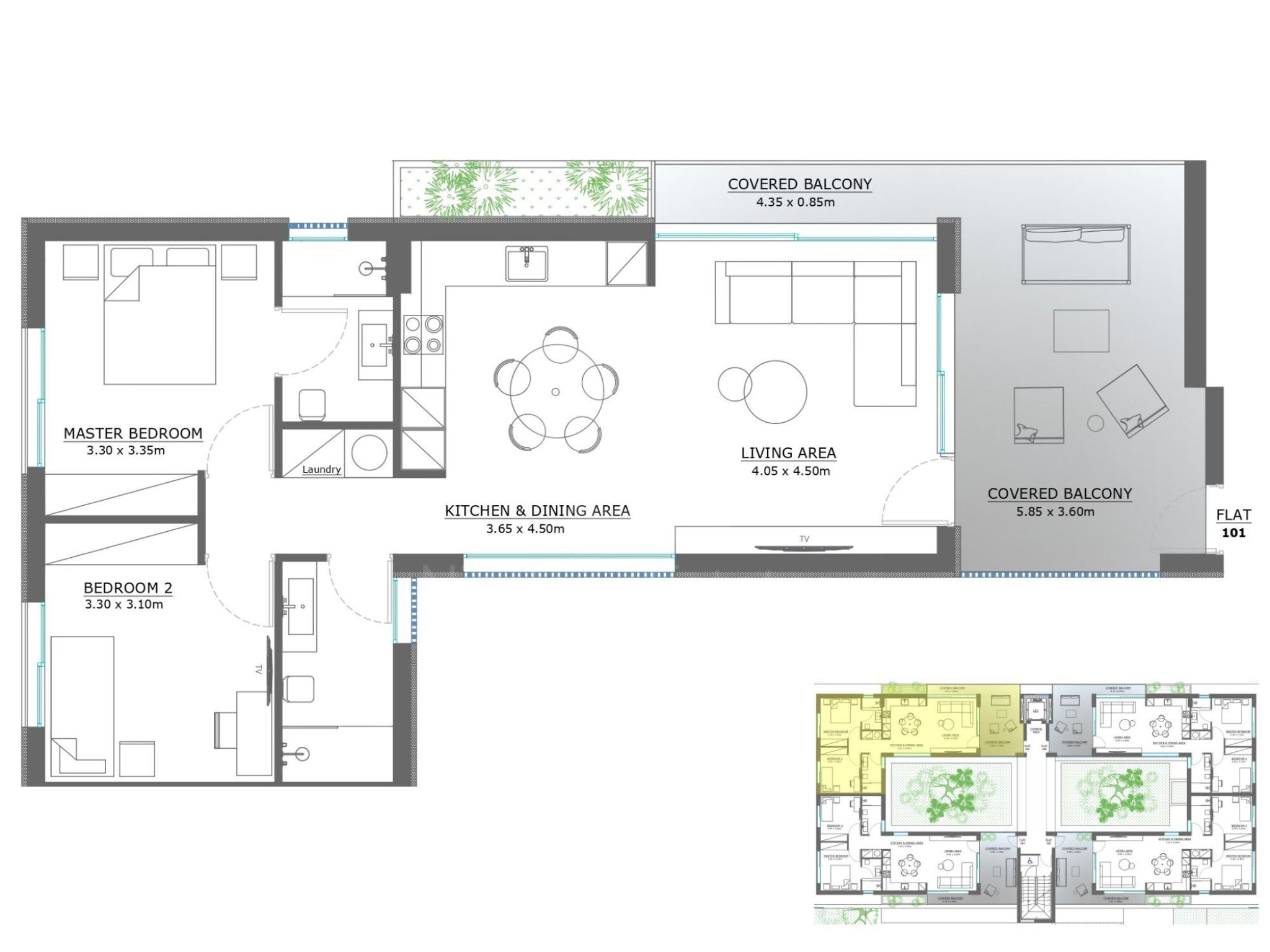 Το κτίριο αποτελείται από πολυτελή διαμερίσματα 2 και 3 υπνοδωματίων και δύο εξαιρετικά ρετιρέ 3 υπνοδωματίων με ανεμπόδιστη θέα στον ορίζοντα της Λευκωσίας.