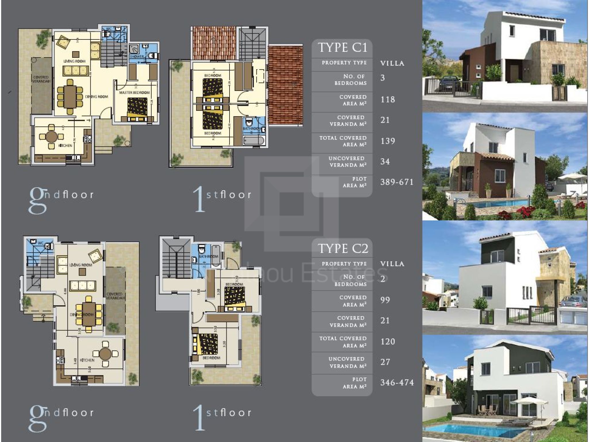 All units cater open plan living, dining & kitchen areas with private swimming pool surrounded with extensive outdoor patio & gardens.