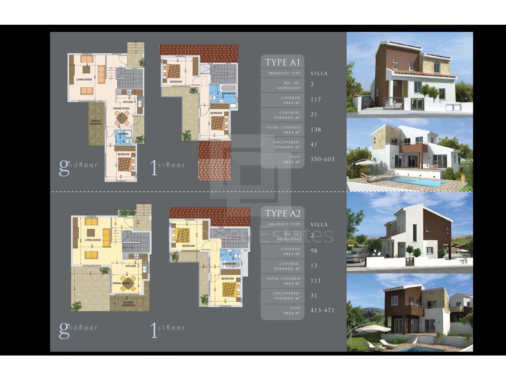 All units cater open plan living, dining & kitchen areas with private swimming pool surrounded with extensive outdoor patio & gardens.
