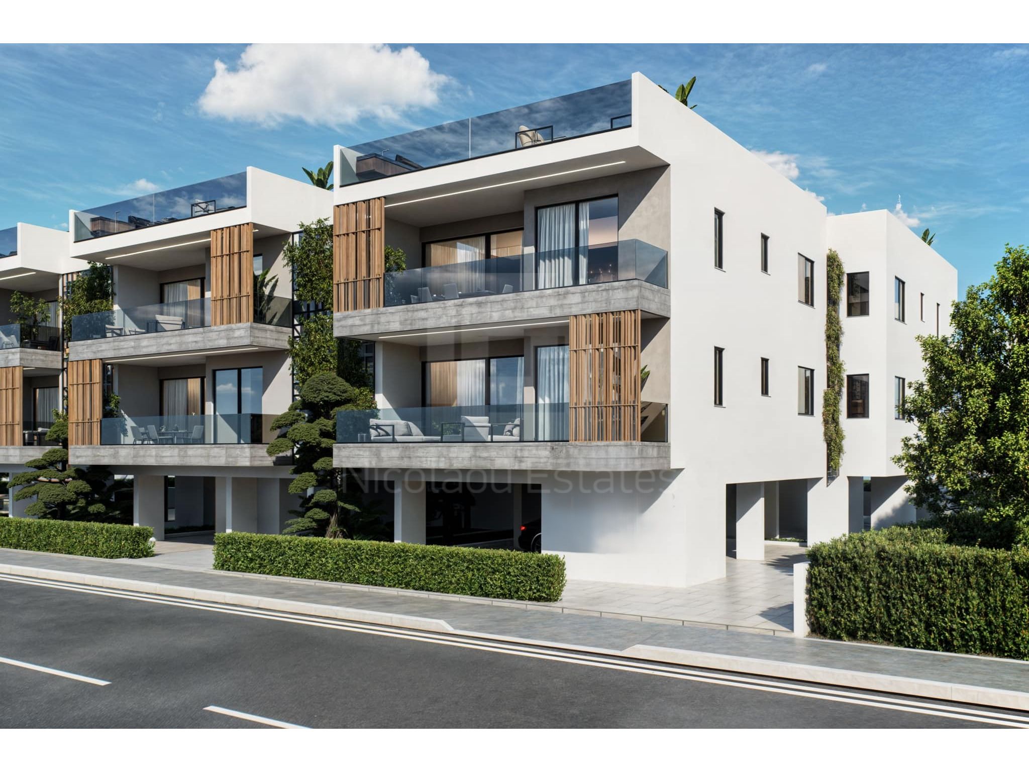 Νέο μοντέρνο διώροφο κτίριο μοντέρνου σχεδιασμού, αποτελούμενο από διαμερίσματα ενός και δύο υπνοδωματίων στην περιοχή Λακατάμια της Λευκωσίας.