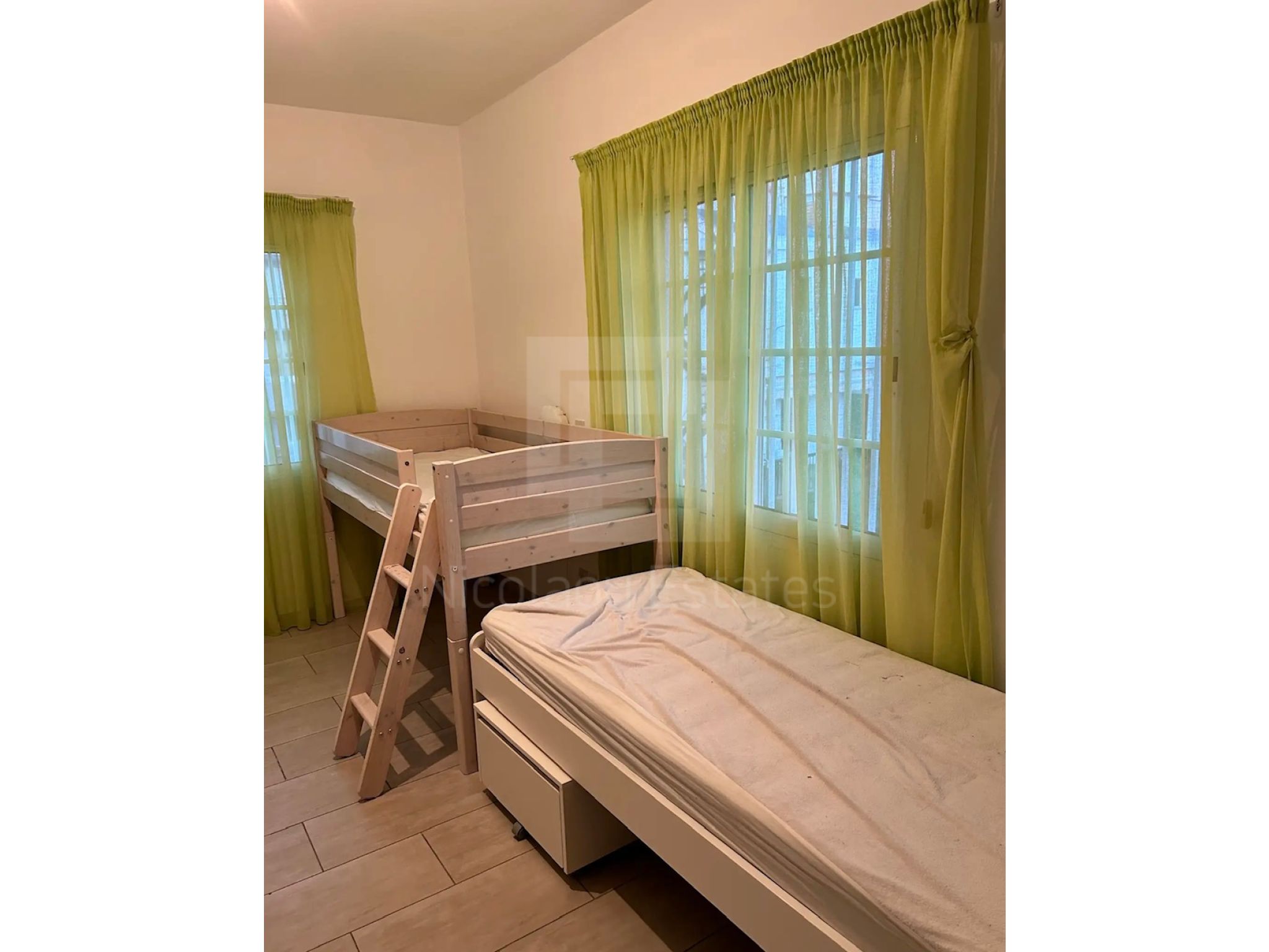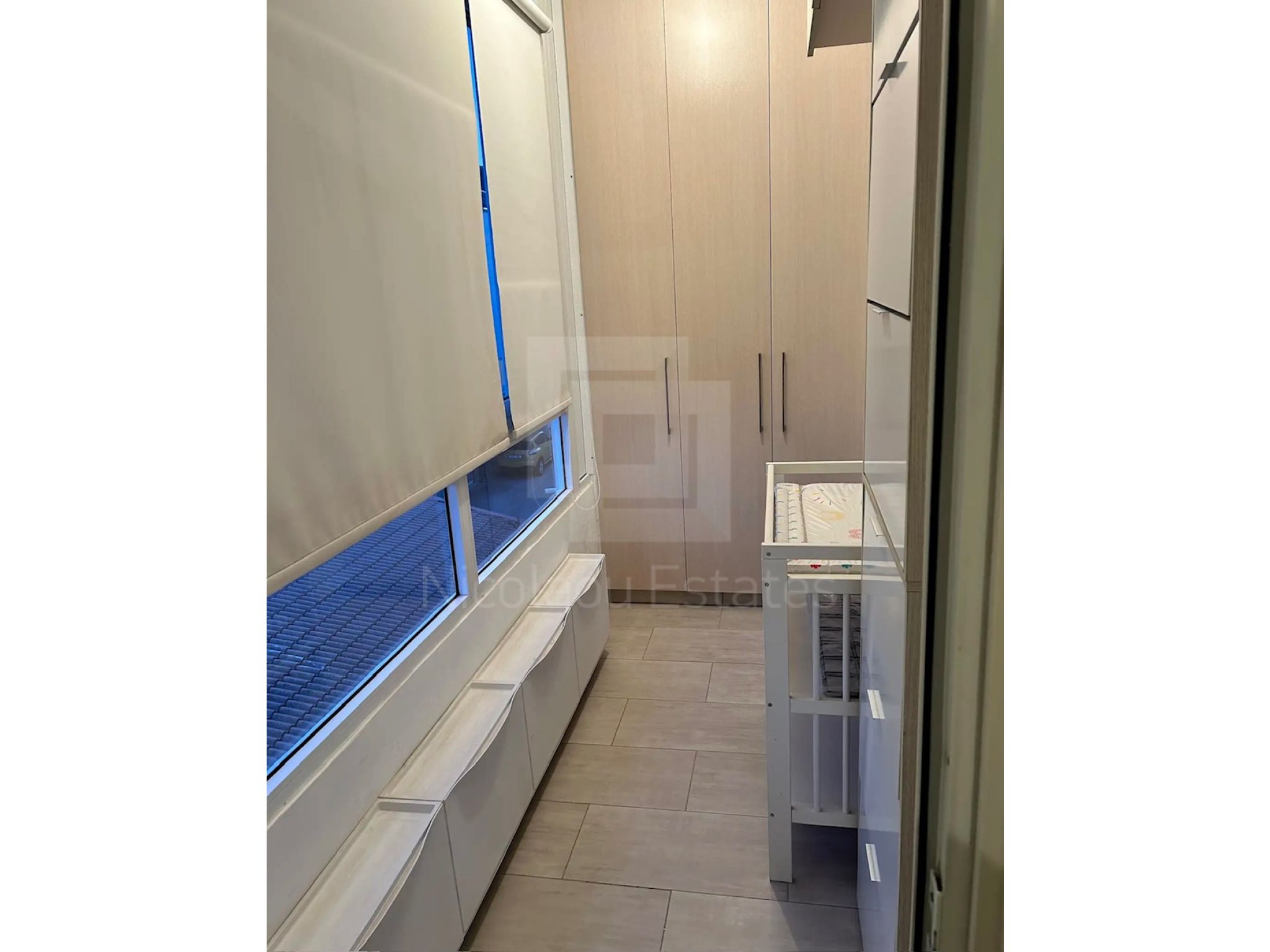 The apartment is part of a block of flats with only 3 whole floor apartments. It consists of a modern living-dining room, a large kitchen with all household appliances, including dishwasher, washing machine and dryer, 3 comfortable bedrooms, the main one with en suite, 1 bathroom, 1 WC, a covered veranda, a covered parking space and a storage room. It has air conditioning in all areas.