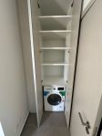 The apartment is part of a three-story, modern apartment building and is located on the 2nd floor. It consists of an open plan living-dining room and kitchen, 1 comfortable bedroom, 1 bathroom, laundry area, covered veranda, a parking space and a storage room. It has all household/electrical appliances, washing machine and dryer, island in the kitchen and granite countertops, air conditioners in all areas and electric shutter in the bedroom.