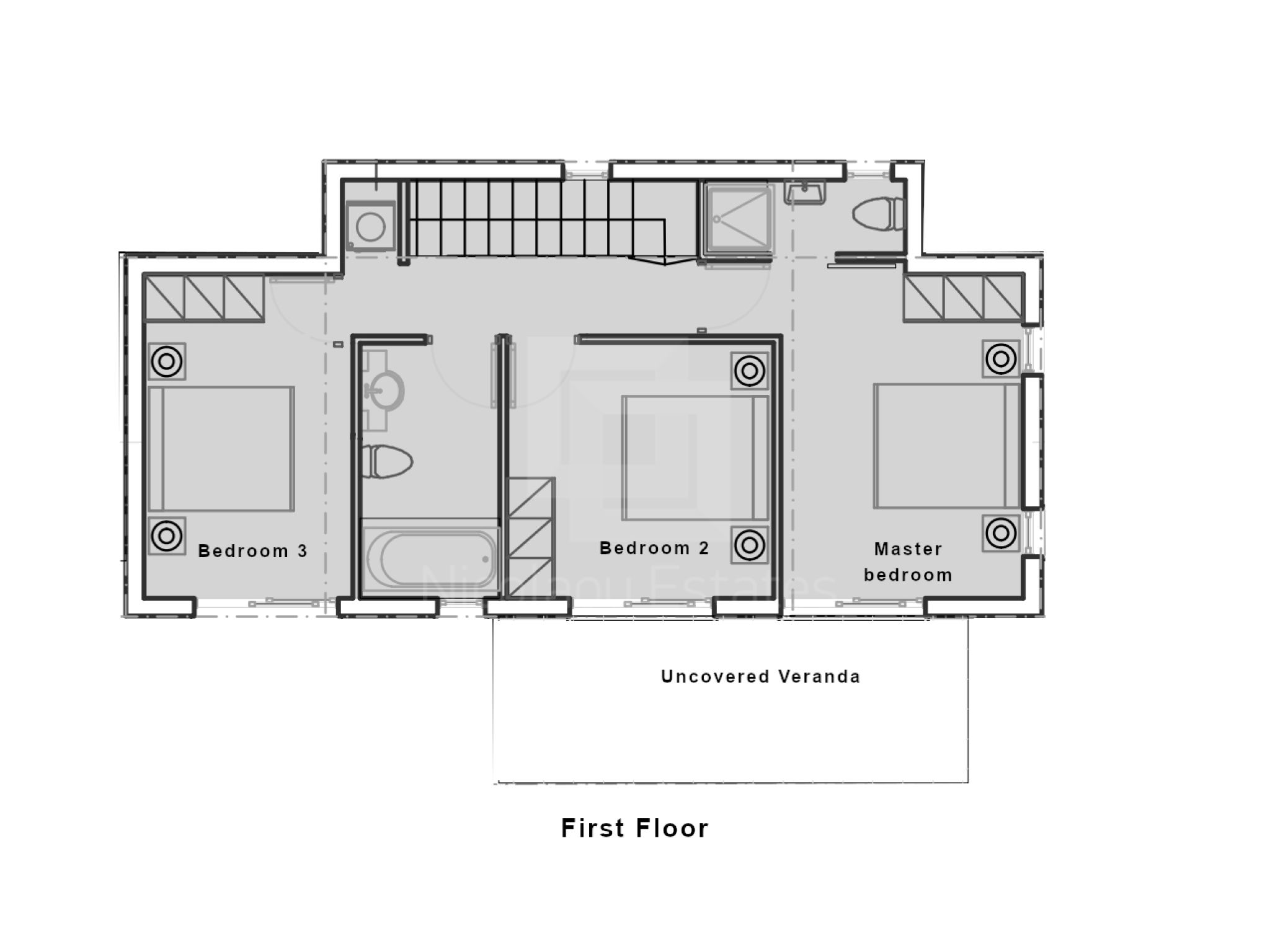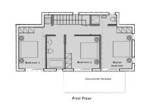- 3 bathrooms – 1 main bathroom, 1 en-suite in the master and 1 guest w/c.