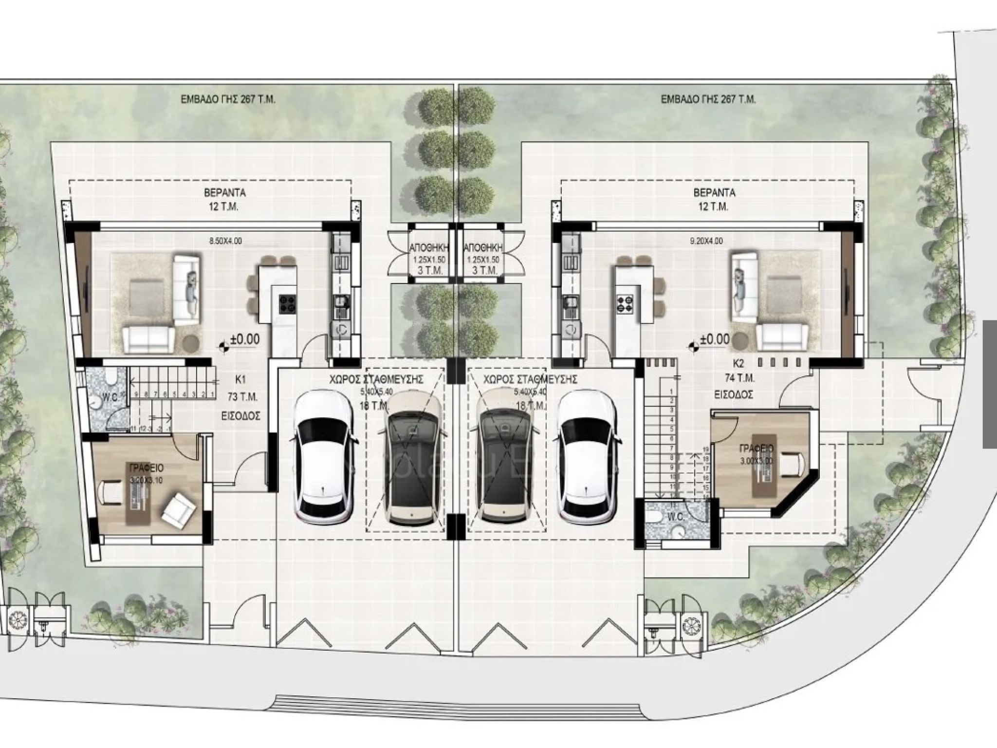 Οι κατοικίες διαθέτουν ανοιχτή διαρρύθμιση που συνδέει άψογα τους εσωτερικούς και τους εξωτερικούς χώρους. Κατασκευασμένες σύμφωνα με τα ενεργειακά πρότυπα Κλάσης Α, οι κατοικίες περιλαμβάνουν πλήρη θερμομόνωση, ιδιωτικό φωτοβολταϊκό σύστημα, ενδοδαπέδια θέρμανση με αντλία θερμότητας και οικιακό αυτοματισμό.