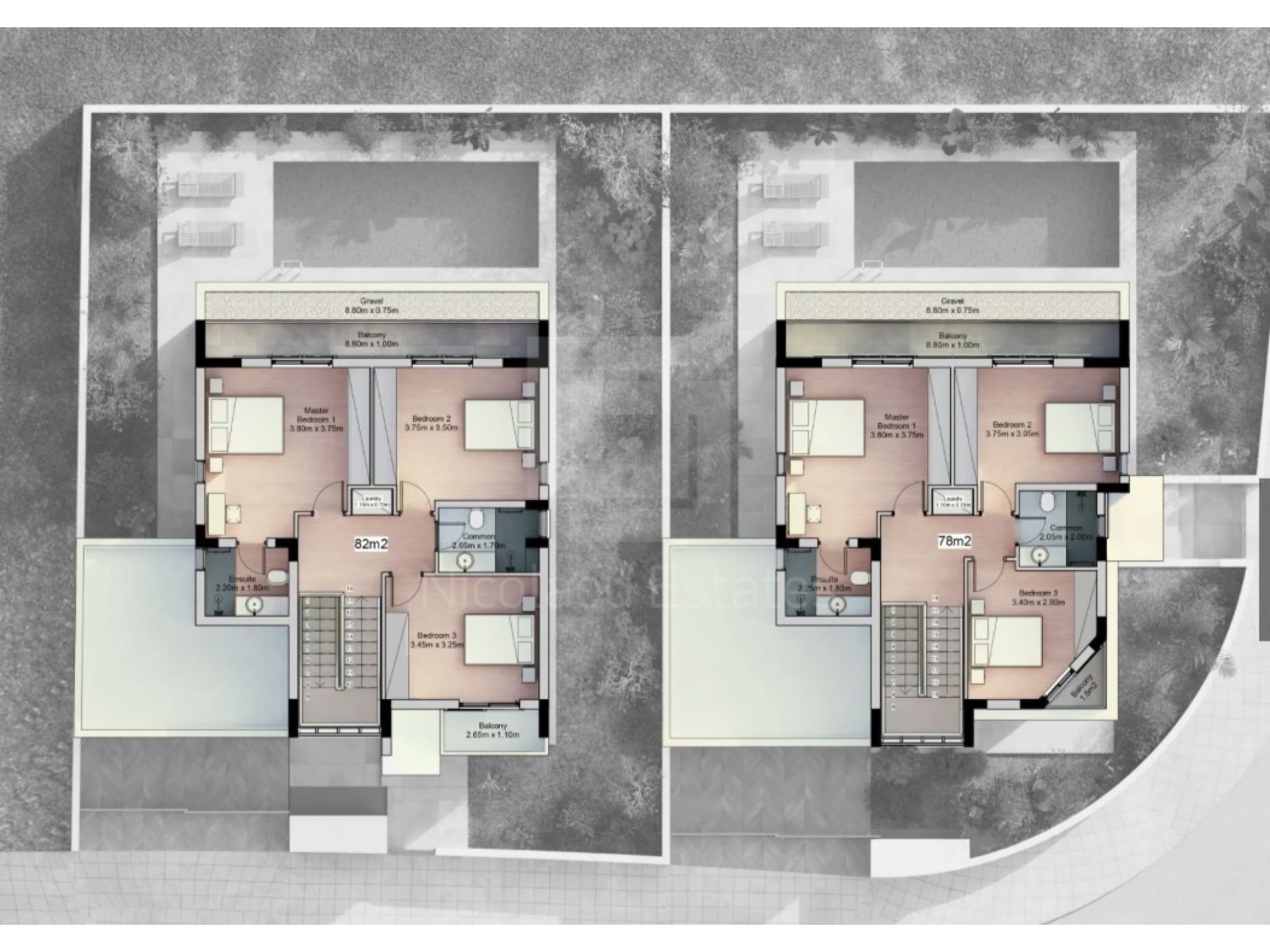 Residence 1 (490,000 plus VAT): 305sqm plot, 161sqm interior space, 30sqm covered terrace, 18sqm uncovered terrace, 28sqm covered parking space and private pool.