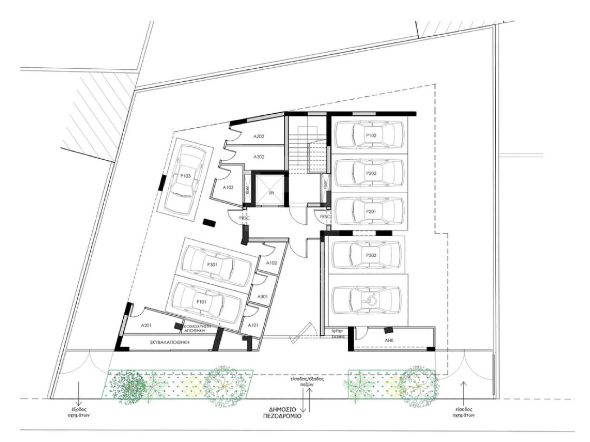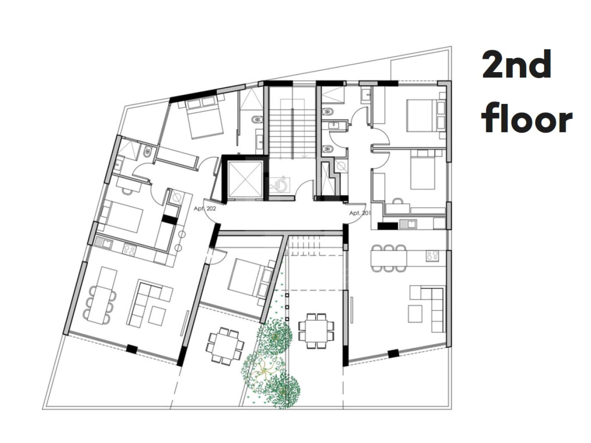 Apt. no.202 is on the 2nd floor and it comes with 96sq.m internal covered areas plus a massive 40sq.m covered veranda, a covered parking space and a spacious 6sq.m private storage room. Price: 475000 euro plus VAT