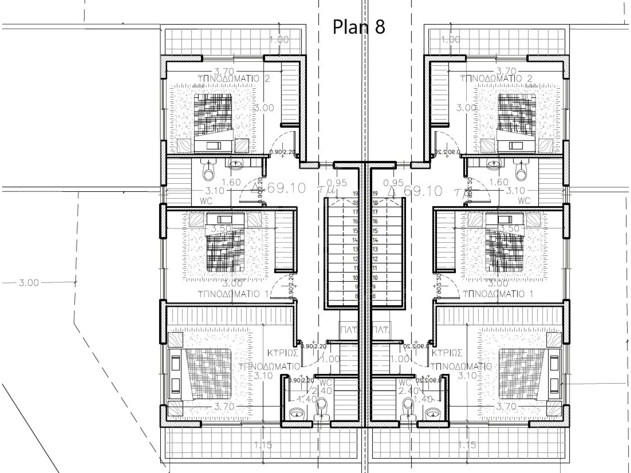 Lovely 3 bedroom semi-detached houses to be build in a quiet area of Palodia village. 16 semi-detached houses will be build with 10 different designs to choose from with small variations and prices starting from 435000 euro plus VAT for the houses of around 130sq.m of internal covered areas to 610000 euro plus VAT for the biggest houses being 143sq.m of net internal covered areas. Most of the houses are around 140sq.m of internal areas and plots of 313sq.m.