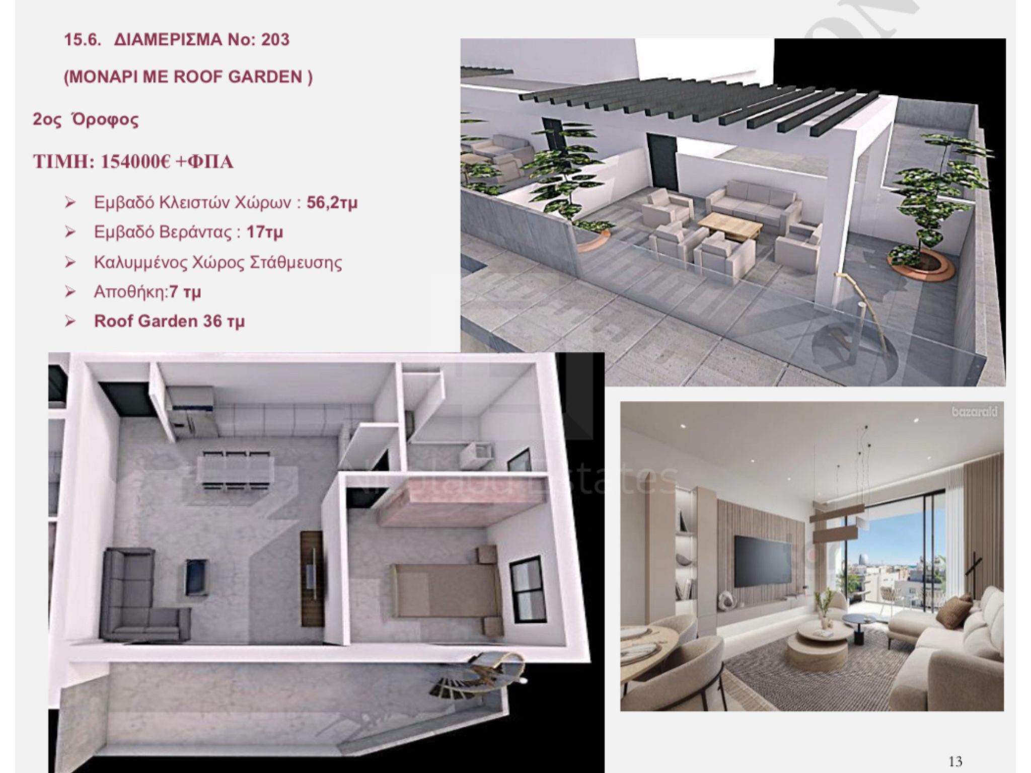Modern one bedroom apartment with roof garden for sale in Latsia
