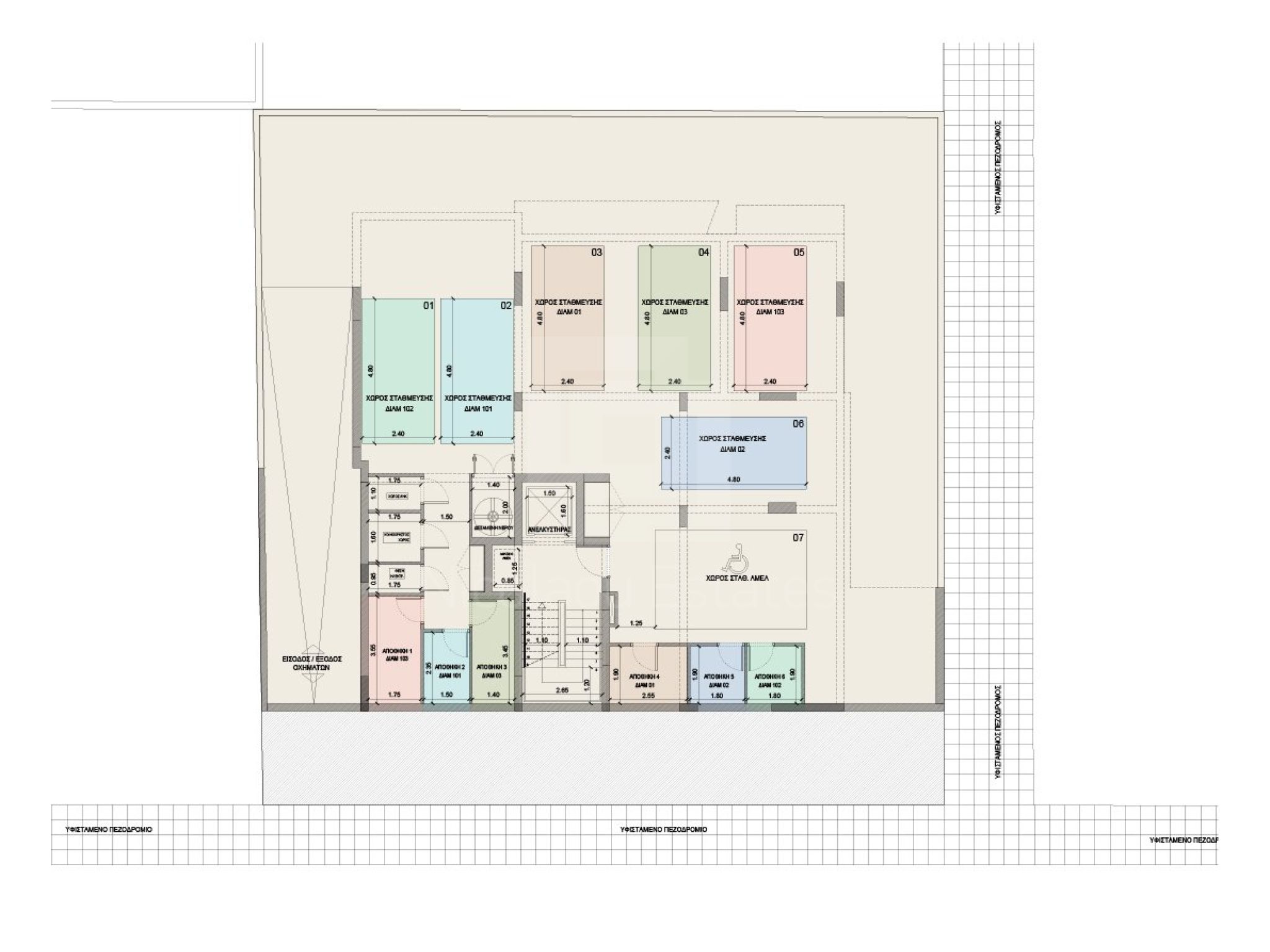 Το υπόγειο παρέχει ασφαλή χώρο στάθμευσης με ειδικό χώρο για κάθε διαμέρισμα, εξασφαλίζοντας άνεση και ηρεμία για όλους τους κατοίκους.