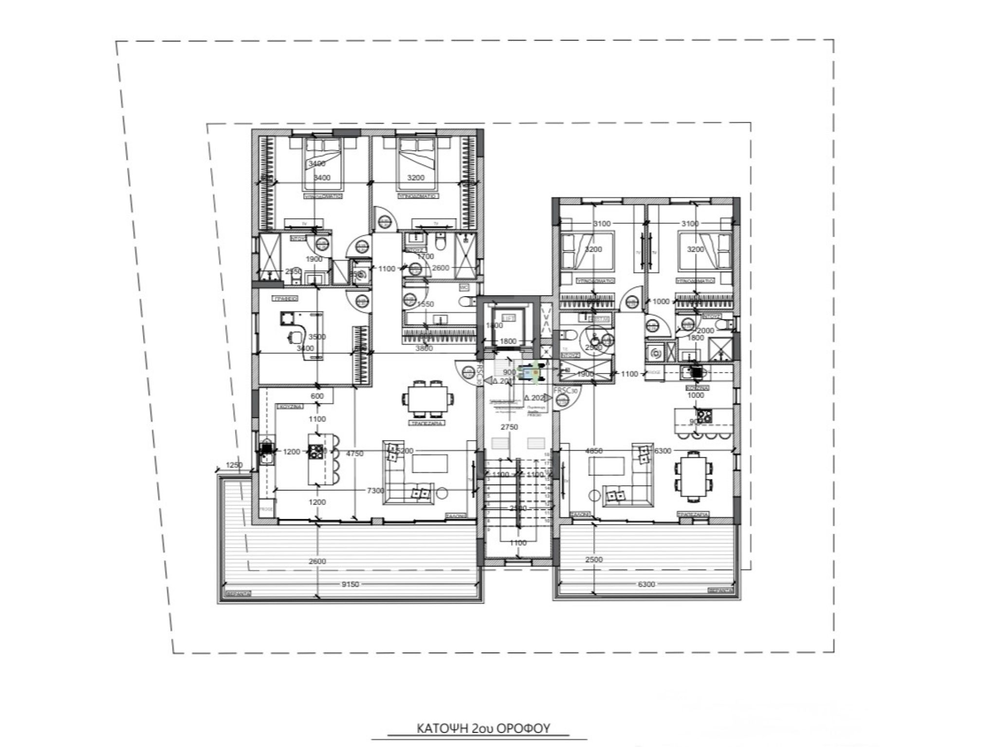 Διαμέρισμα 202 (225.000 συν ΦΠΑ): 80τμ εσωτερικός χώρος, 18,7τμ καλυμμένη βεράντα, 2 υπνοδωμάτια, το κυρίως με en suite, 1 μπάνιο, αποθήκη και καλυμμένος χώρος στάθμευσης.
