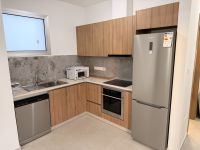 It is equipped with all electrical appliances (brand new) such as oven, hob, refrigerator, microwave, dishwasher, washing machine. It also has air conditioning and blinds on the windows.