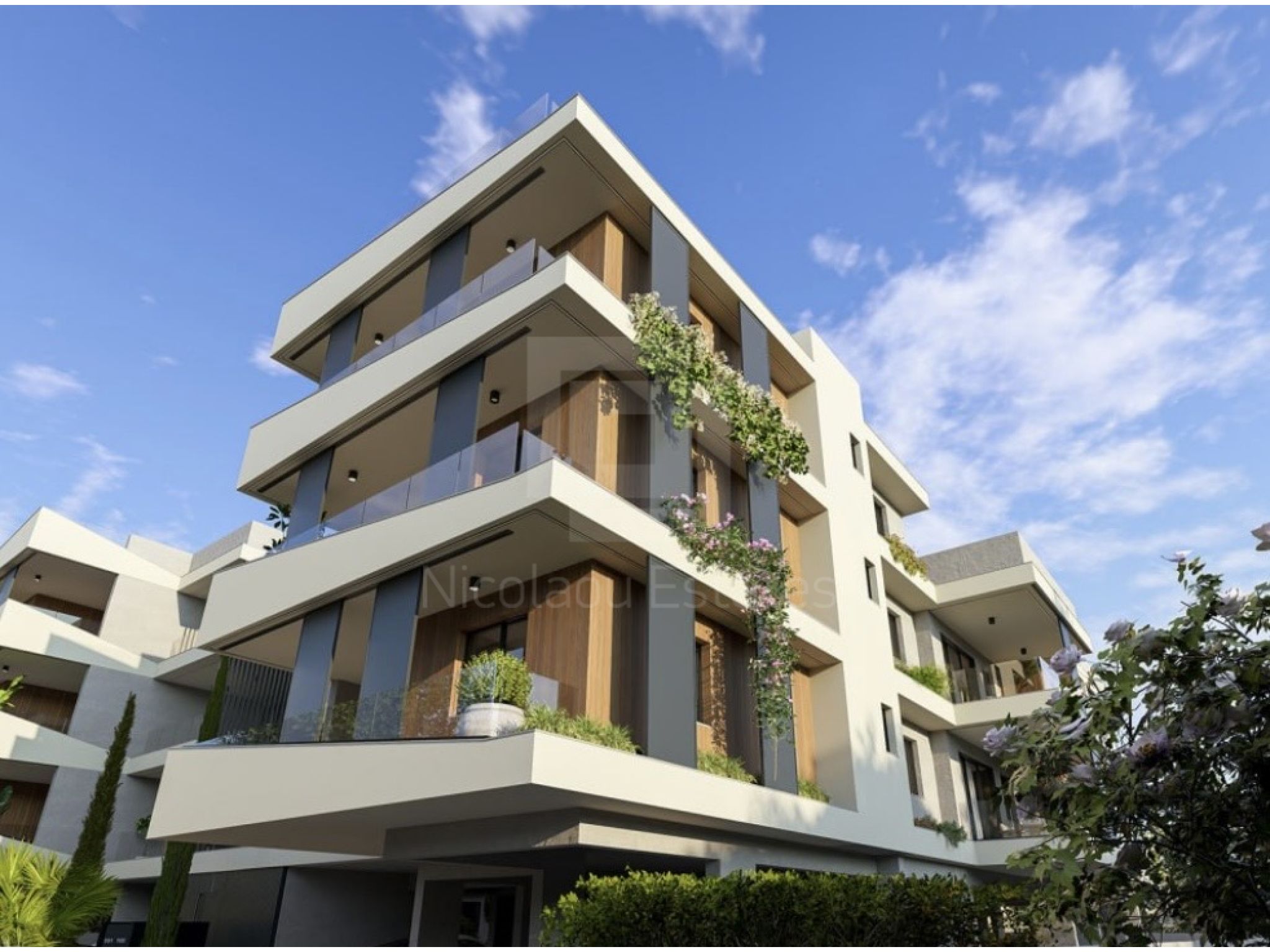 The project consists of 2 modern, identical apartment buildings of 1 and 2 bedrooms. The 1 bedroom apartments consist of spacious open-plan spaces with a living-dining room and kitchen, comfortable bedrooms and large covered verandas.