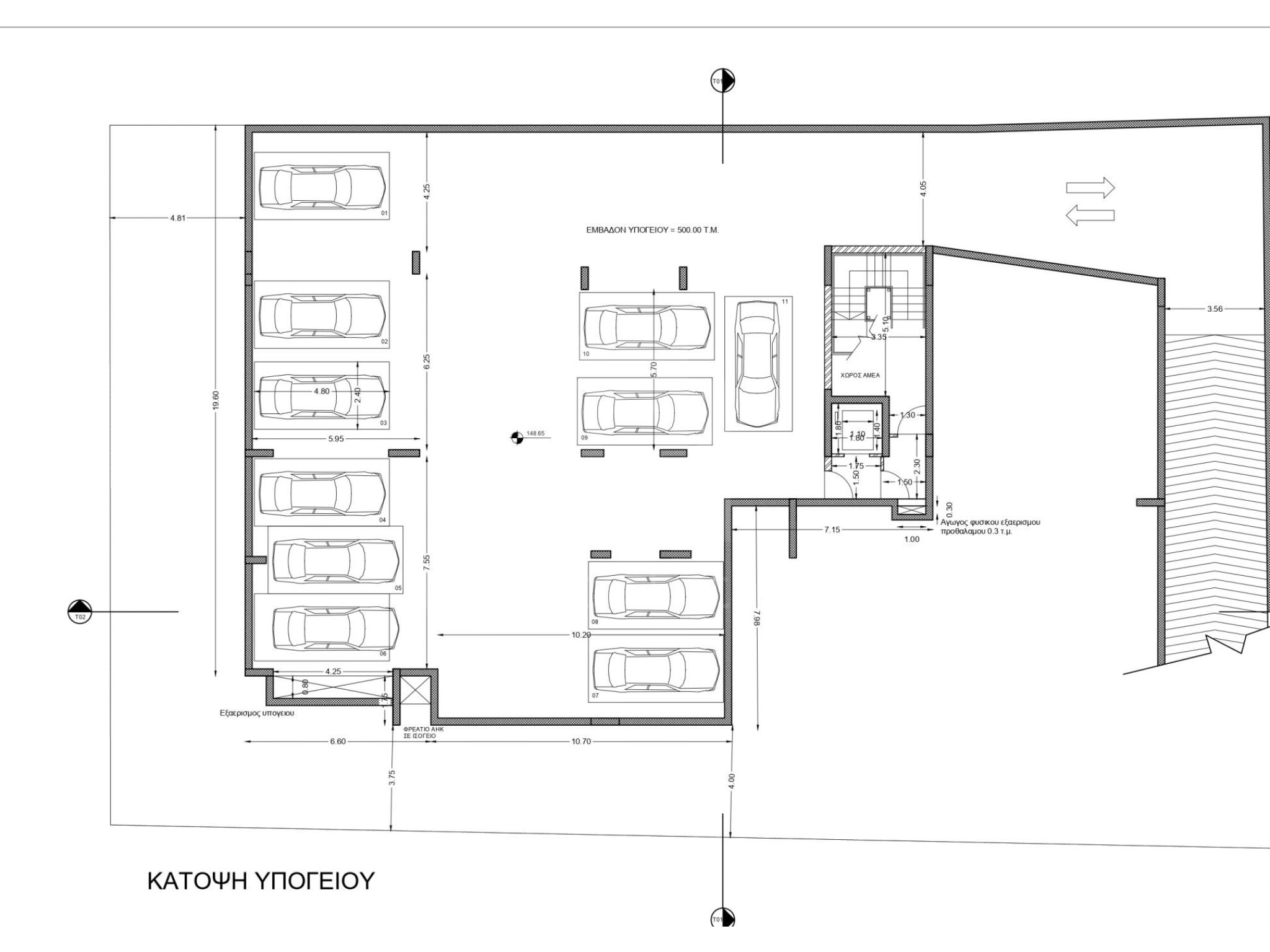 Στο υπόγειο και στο ισόγειο υπάρχουν λειτουργικά σχεδιασμένες θέσεις στάθμευσης για κάθε διαμέρισμα.
