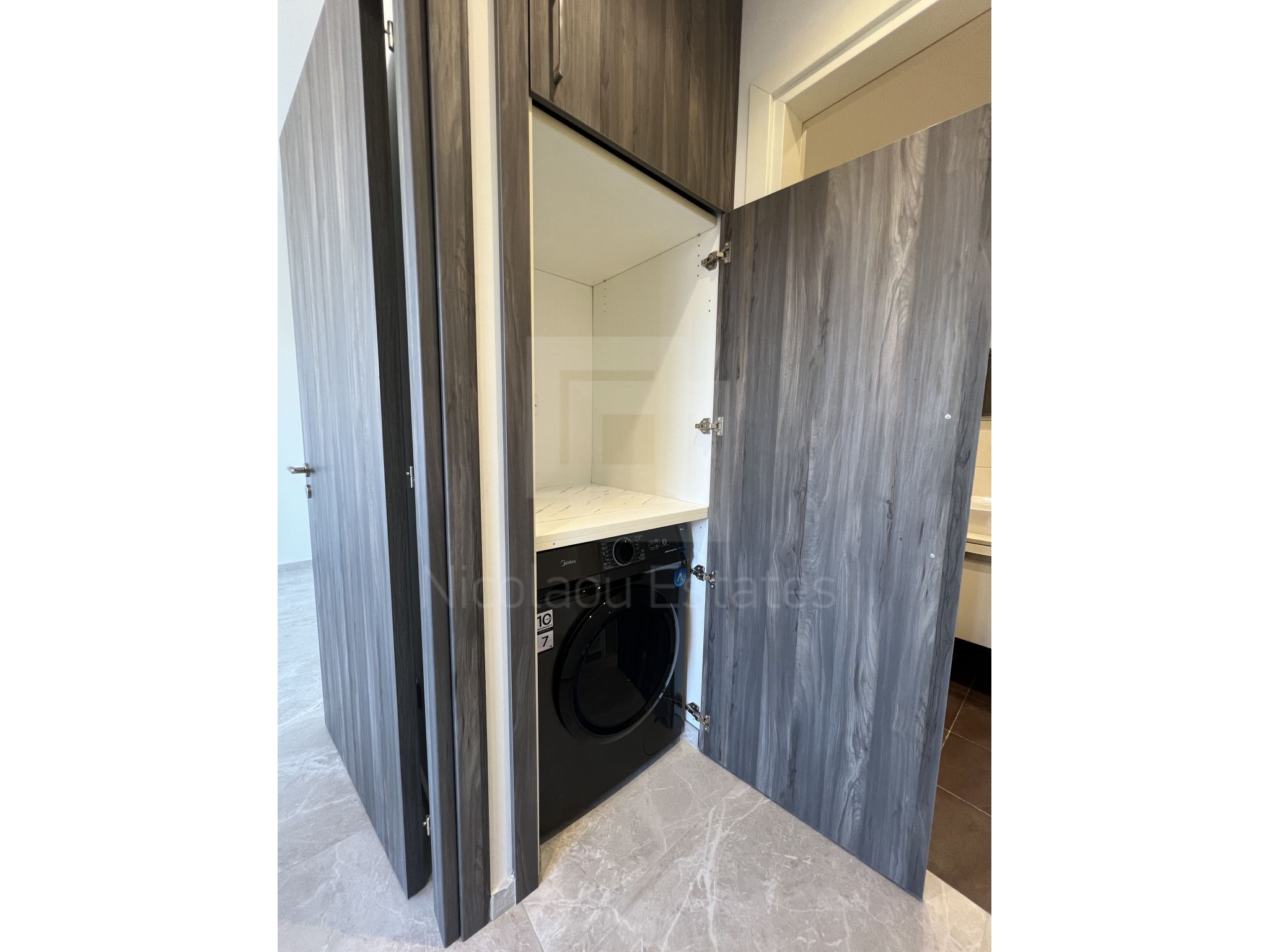 The apartment is offered unfurnished and is located on the first floor of a modern, well-maintained three-storey building, offering functional and contemporary living.