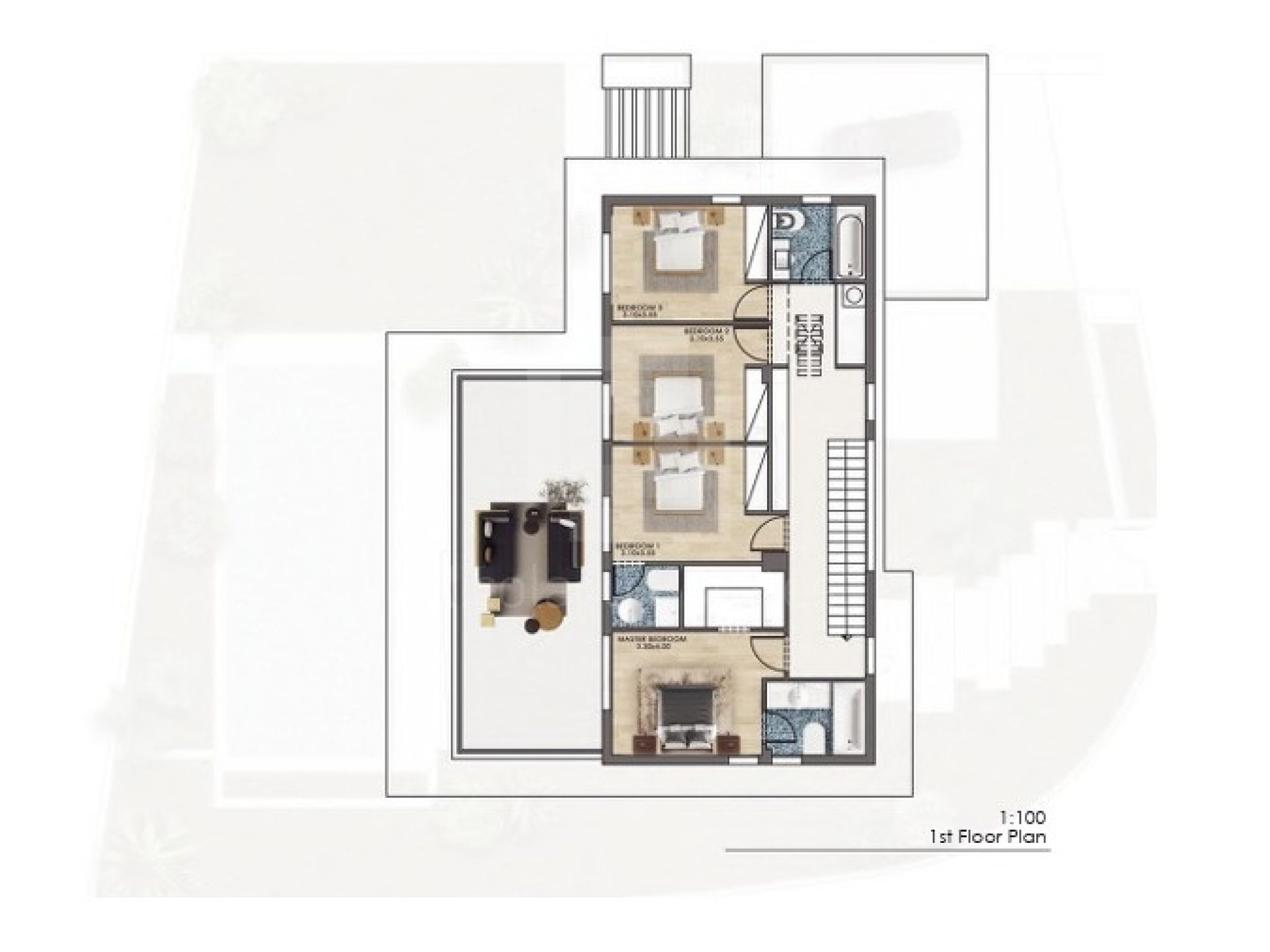 The Large covered veranda and the ground floor living space are a few steps aways from a cooling dip in the swimming pool and a bit further down the barbeque area with its own dining space comes to complete the perfect outdoor living for the whole family.