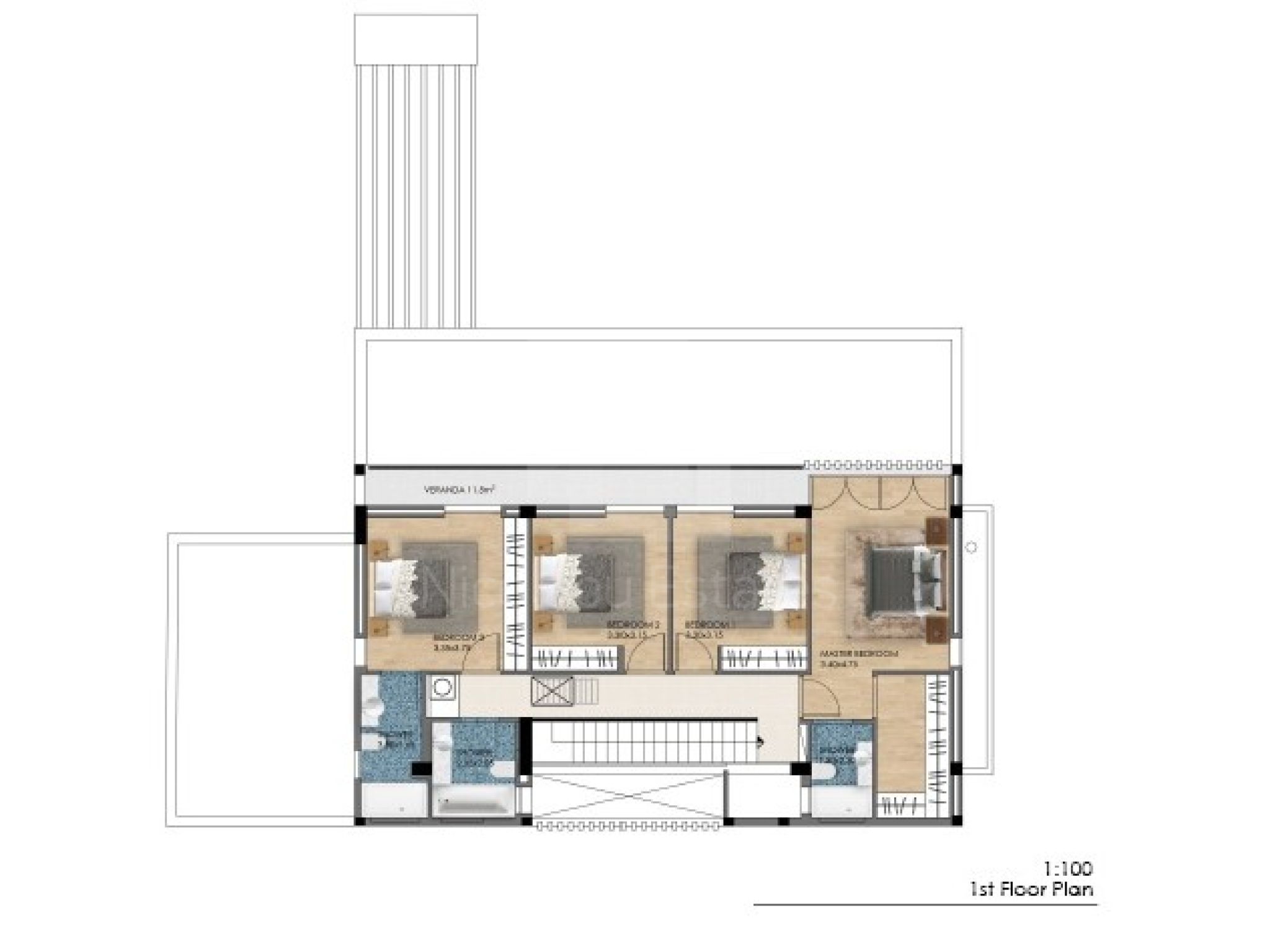 The Large covered veranda and the ground floor living space are a few steps aways from a cooling dip in the swimming pool and a bit further down the barbeque area with its own dining space comes to complete the perfect outdoor living for the whole family.