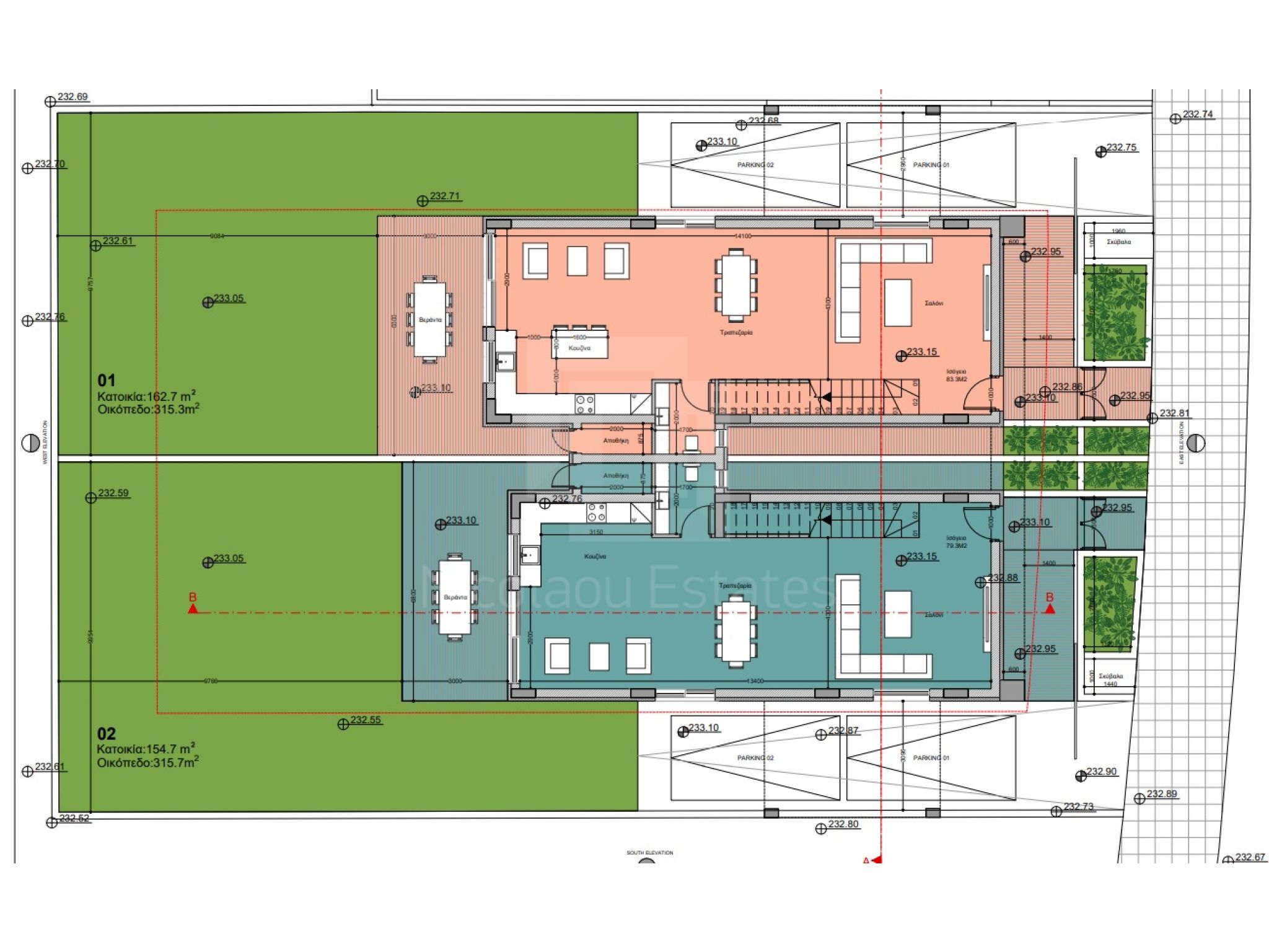 The Project consists of two modern detached houses in a quiet area of Kokkinotrimithia. Near the Highway which connect the major cities, all essential amenities and Nicosia city center.