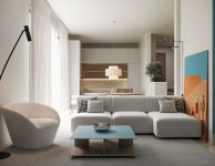 -Living Space: The largest room combines the kitchen and living area, approximately 50 sq. m.