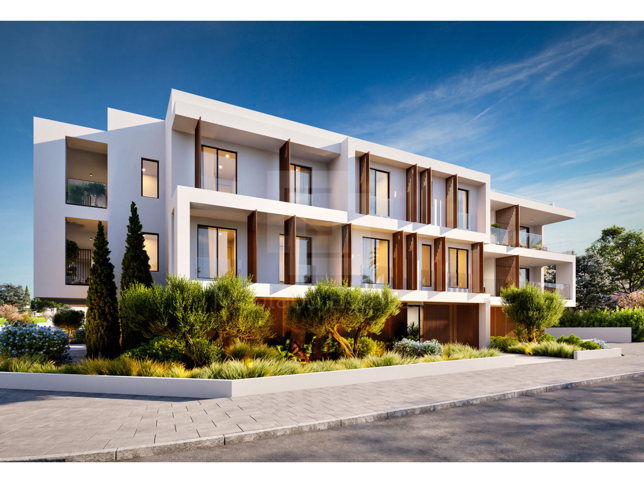 Η ανάπτυξη αποτελείται από 2 κτίρια, ένα κτίριο διαμερισμάτων 1 και 2 υπνοδωματίων και ένα άλλο κτίριο διαμερισμάτων 2 και 3 υπνοδωματίων με ιδιωτικές ταράτσες για τα διαμερίσματα του τελευταίου ορόφου.