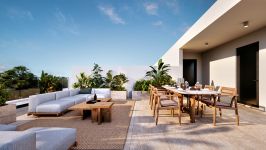 The development consists of 2 buildings, one building of 1 and 2 bedroom apartments, and another building of 2 and 3 bedroom apartments with private roof terraces for the top floor apartments.