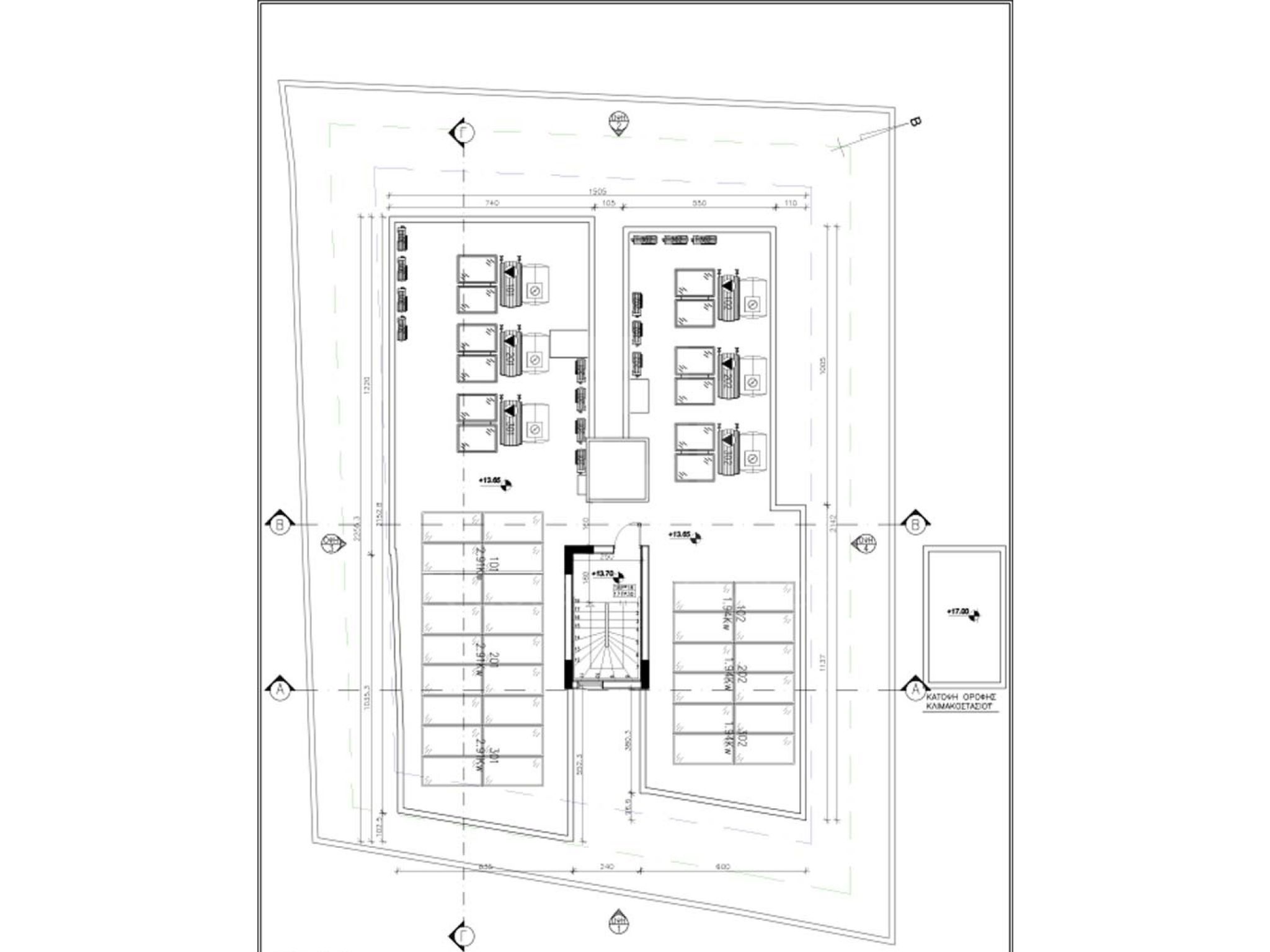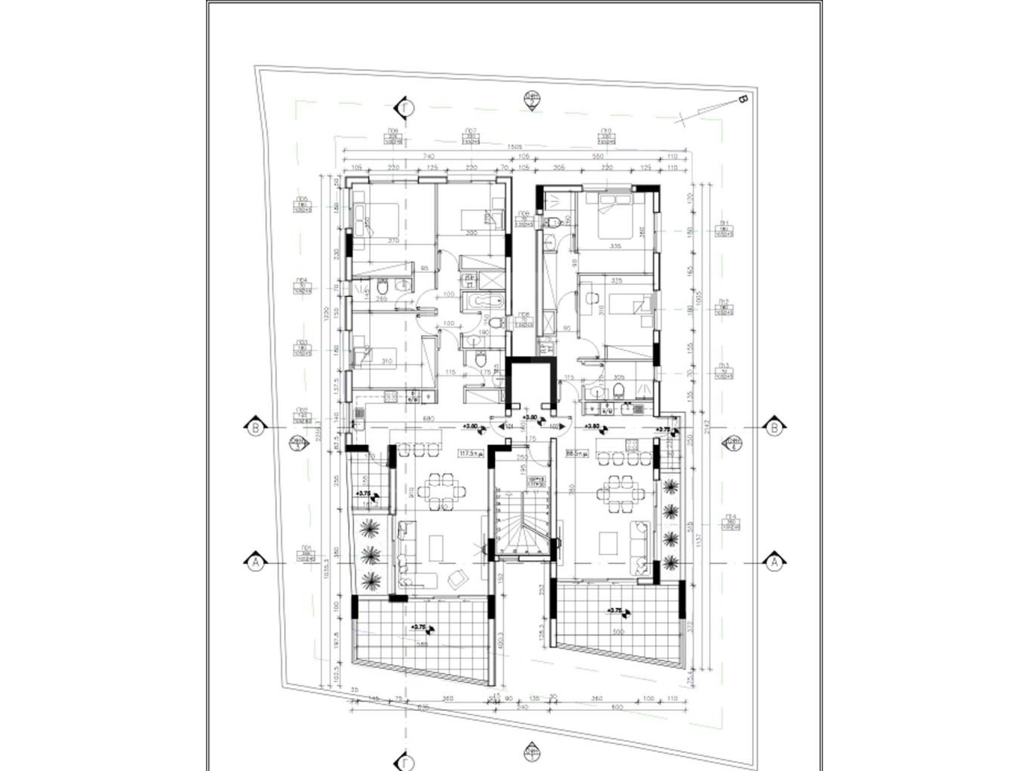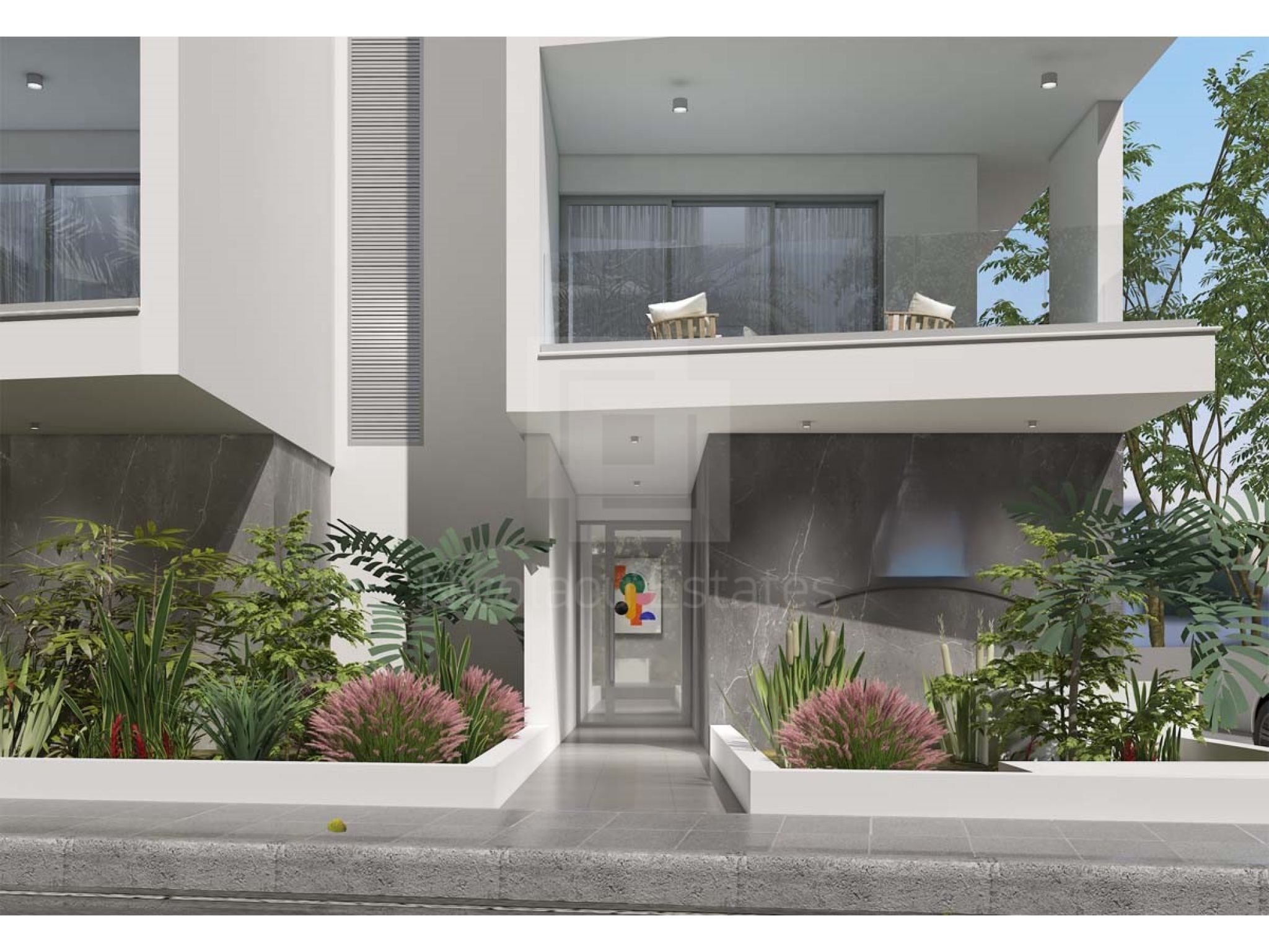 Κάθε όροφος έχει ένα διαμέρισμα 3 (τριών) υπνοδωματίων και ένα διαμέρισμα 2 (δύο) υπνοδωματίων.