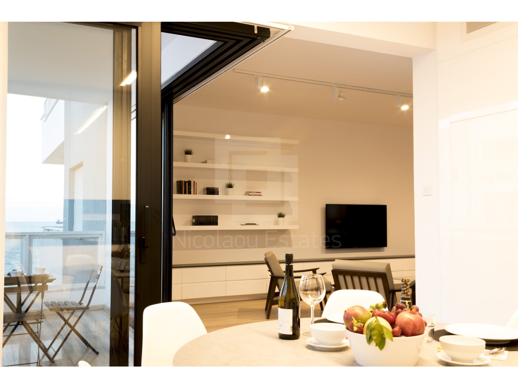 A beautiful 3 bedroom sea view apartment is located on the first line in Potamos Germasogeia area, in a well-kept gated complex with direct access to the beach, next to the 4* and 5* hotels and close to all amenities. 6th Floor/ 3 Bedrooms (master bedroom with ensuite)/ Main bathroom/ Guest WC/ Separate kitchen/ Spacious living/dining room/ Spacious verandas/ Fully renovated, fully furnished & equipped/ Communal swimming pool/ Parking/ Covered area: 170 sq.m.